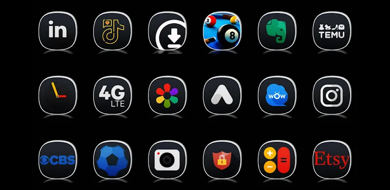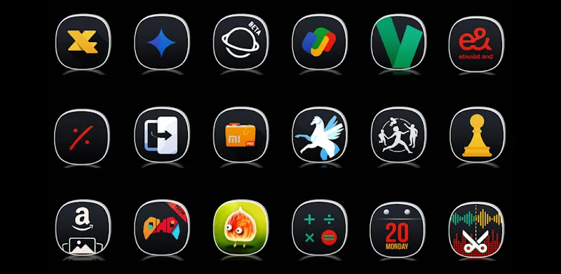 1UI7 DarkR Icon Pack brings special designs suitable for users who love a mysterious style. The dark color palette, combined with some bright colors, will be the bold choice of experts. Users will be surprised when receiving the icon pack and wallpaper full of personality that the application has designed.VAST ICON COLLECTIONThe icon pack released by the application will make users fall in love with many impressive details. Thousands of unique and carefully designed icon templates will be added to the pack. Users can feel the special beauty of this icon pack when admiring it. The quality of the icons, along with the overlay effect, will help improve the d