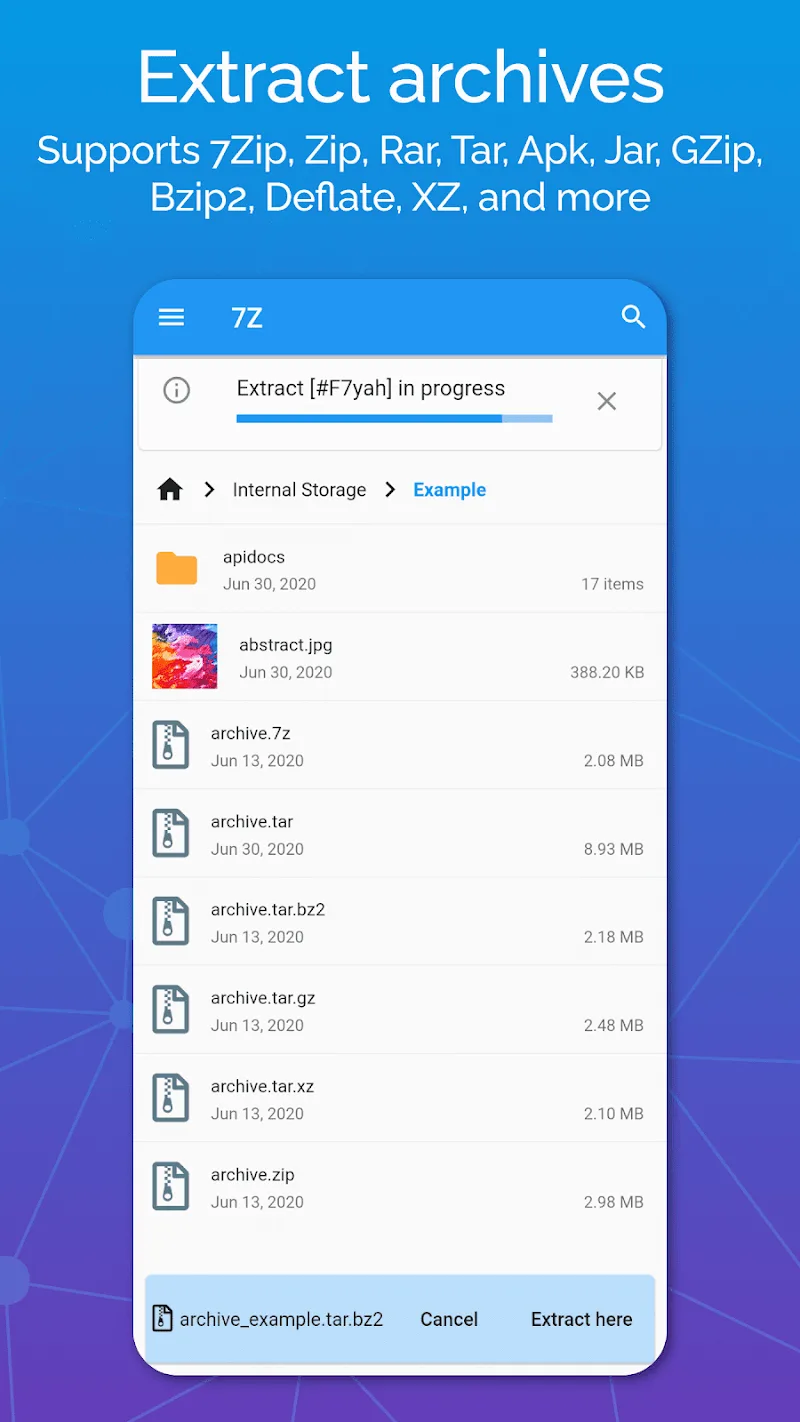 7z Zip 7zip Rar File Manager apk-en ion, you can open formats quickly and safely.Encrypted Zip Creation: With the support of this tool, creating Zip files has never been easier, and, more importantly, everything is encrypted to increase your information security.High Compression Support: Moreover, the application also supports high compression formats to ensure that the quality meets the user’s requirements. The formats are 7Zip and Tar.Password Protected Extraction: For important files, the application uses a password to safely extract them to ensure their effective use. Data integrity is our top priority.