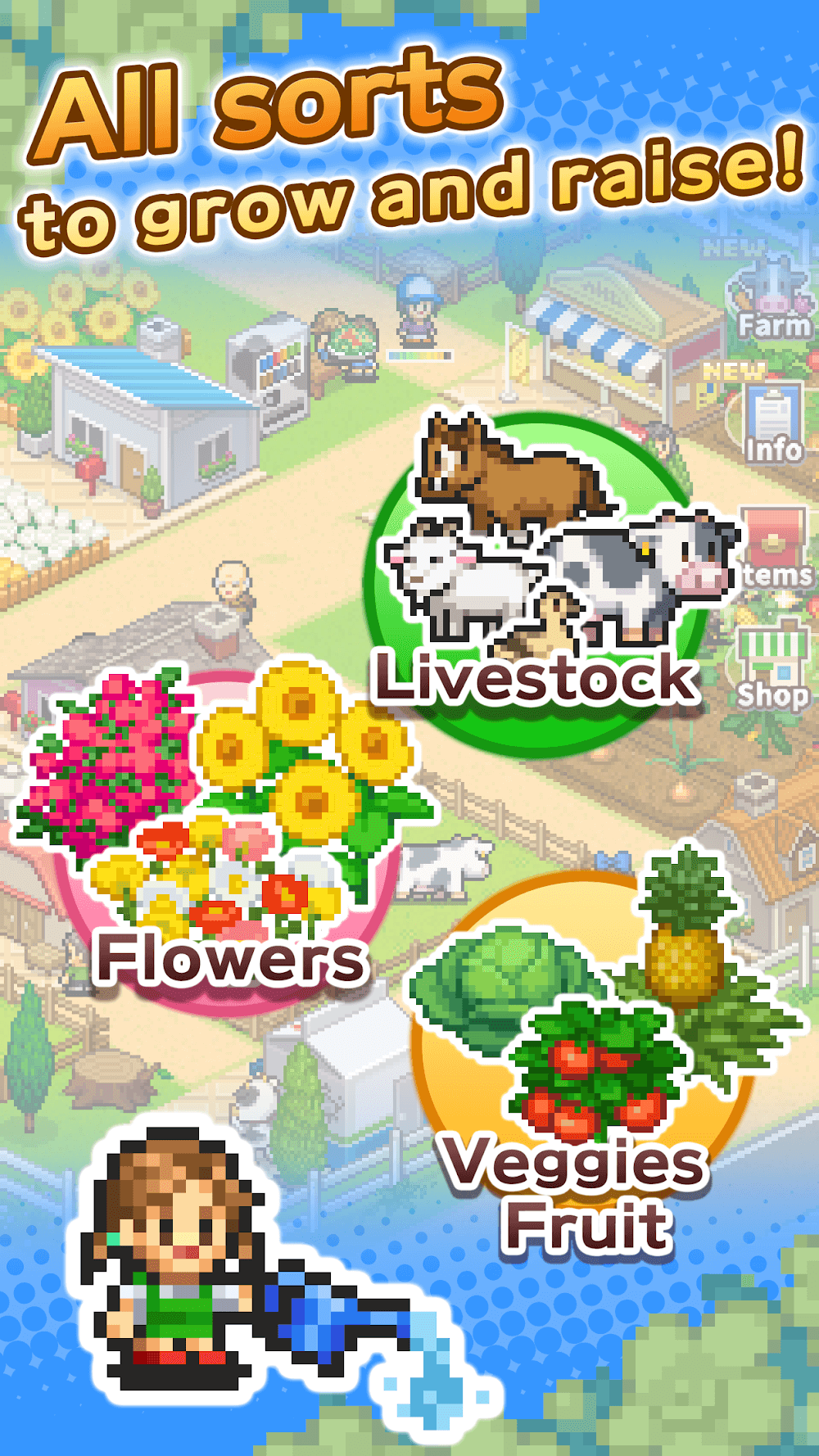8-Bit Farm Mod APK: Transform a humble farm into a bustling agritourism hub through strategic management and fun.You want to become a farm owner right on your phone. 8-Bit Farm is an ideal farm management game. The game provides players with the experience of growing crops, raising livestock, and also developing the farm into an agricultural tourist destination.COMPREHENSIVE FARM MANAGEMENTPlayers will manage a farm from the most basic steps. Start with basic activities such as raising livestock and growing crops, and after mastering them, you can develop the farm into an attractive farm tourist destination. The special feature of the game is the combination of gardening and tourism, which makes the game even more special.Animal Crop Diversity: