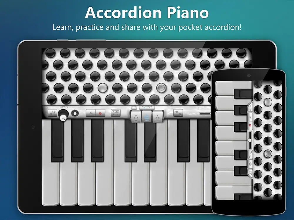Accordion Piano Premium hat the Accordion Piano integrates. With a simple switch, users can completely change and receive many of the most special types of Accordions from the world’s leading famous manufacturers.ADAPTABILITY TO GOOD QUALITYUsers will be able to immerse themselves in a world of wonderful music created with the Accordion because the simulated sounds are a