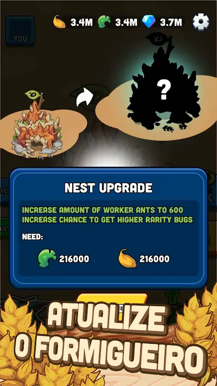 Age Of Ants Bug War Simulator Mod Apk will enter the world of ants and learn about their social operating mechanism. Of course, developing an empire is the direction that each player is aiming for throughout the gameplay.Expand Your Nest: Each person needs to quickly collect a number of resources from theine nature. From there, they will have the opportunity to develop the ant community and quickly expand.Upgrade Workers & Generals: Strength is always a factor of concern over time, so you will need to consider upgra
