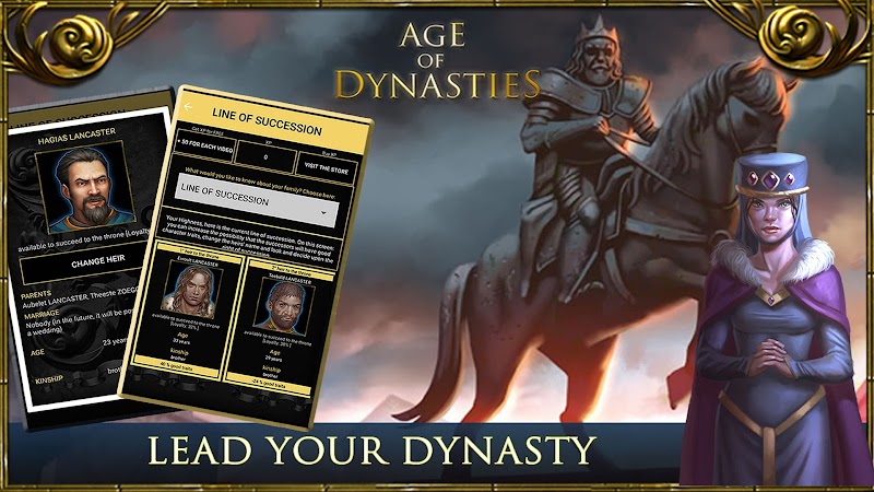 Age Of Dynasties Mod Apk ying the role of important characters.Rule your kingdom: The system allows you to choose between the role of King or Queen to make appropriate decisions. At the same time, all experiences will often focus on choices.Diplomacy and warfare: Many different activities will require you to consider carefully. Specifically, you must participate in royal weddings to establish alliances or start wars.Dynasty management: Over time,