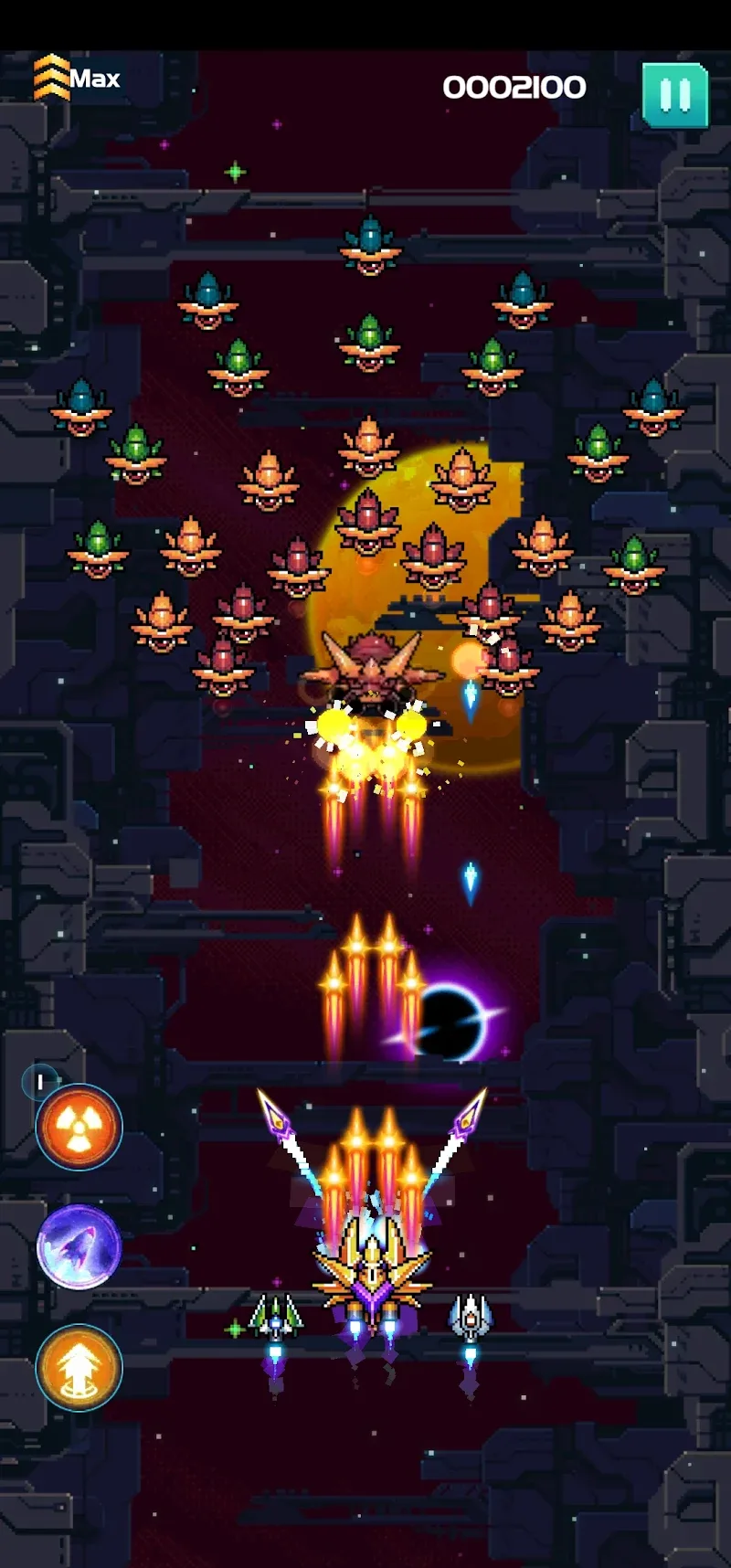 Air Force 2 Alien Shooter apk-en : The framework permits players to open noteworthy weapons rapidly. Of course, their potential is continuously restricted, so you’re constrained to perform the essential updates to utilize in a fight.Upgrade Your Shuttle: Weapons regularly cannot make supernatural occurrences in case you lack spaceships with amazing stats. From there, a great combo can be created rapidly, employing an assortment of components.Key Power-Ups: An adversary can drop boosters that have beneficial effects on you. So, you may have to consider your assaults and developments to gather them legitimately.