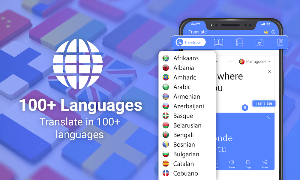 All Language Translate App is a text translation application that is considered to bring a lot of convenience to users. The main feature that this application brings is text translation; users can use it mainly for learning purposes. Besides, they can also take advantage of it for work as well as travel purposes. Besides, the app has also integrated many useful features to help users translate text more easily. Some of the outstanding features that few of these apps possess are the text-to-speech conversion feature and the ability to scan text on the spot.SUPPORTS OVER 130 LANGUAGESFrom the moment of use, all users can see that this application supports almost all languages in the world. All of these languages are created by publishers and placed in a list. Users just need to open that list and select the language they want to translate and then enter the text and it will give us another language version of that text.Language diversity: We can travel anywhere with peace of mind when using this app because it can cover almost all languages in the world.Breaks barriers: The biggest benefit that this application brings is that it can break down the language barriers that we will encounter when talking to people from other countries.REAL-TIME VOICE AND TEXT TRANSLATIONThe feature that many users appreciate is that this app allows users to input the Open text they want to translate with their voice. This is really helpful for us when we travel to other countries, but don’t waste time entering an entire conversation here. In addition, it can also automatically read out the translated version, saving the opponent from having to look at it and read it themselves. Besides, it also helps users avoid the risk of someone stealing their phone.Instant translation: By adding this feature in the application, users can convert all the content they are saying into text and thereby create a new translation instantly.Real-time conversations: Most users will apply this feature to some cases where they need to have a conversation with a foreigner immediately without having time to enter each word.Universal use: This application is quite widely used for those who like to travel but are not too knowledgeable about the language of the place they visit.IMAGE TRANSLATION WITH OCRBesides, this application also supports users’ work and study quite effectively with this feature. Basically, for content that is too long in a paper document, users cannot have enough time to enter and distribute it. By using this feature, users just need to scan that text and the application will automatically translate it into the language they want.Text extraction: The way this feature works is quite easy to understand: it will automatically scan all the words the user wants to translate, bring them all into the app, and then provide the translation to the user.Avoid manual typing: The biggest benefit is that users do not need to manually enter every word they see; they just need to scan it with this application.SHARING AND SAVING TRANSLATIONSFor long pieces of text, users need to select it all themselves, copy it, and paste it to the person they want to send it to. Users here just need to click on the share button built into this app and select the media and people they want to share with. This feature helps save users a lot of valuable time or brings convenience to emergency situations.Share translations: The application also integrates with many other applications to make it more convenient for users to share translations.Review conversations: The special feature is that translations that users have previously translated can also be saved for them to review later.Build phrase library: A special feature of the application is that the translated version will then follow a drama system that is quite accurate in the country and uses the language the user wants to translate into.