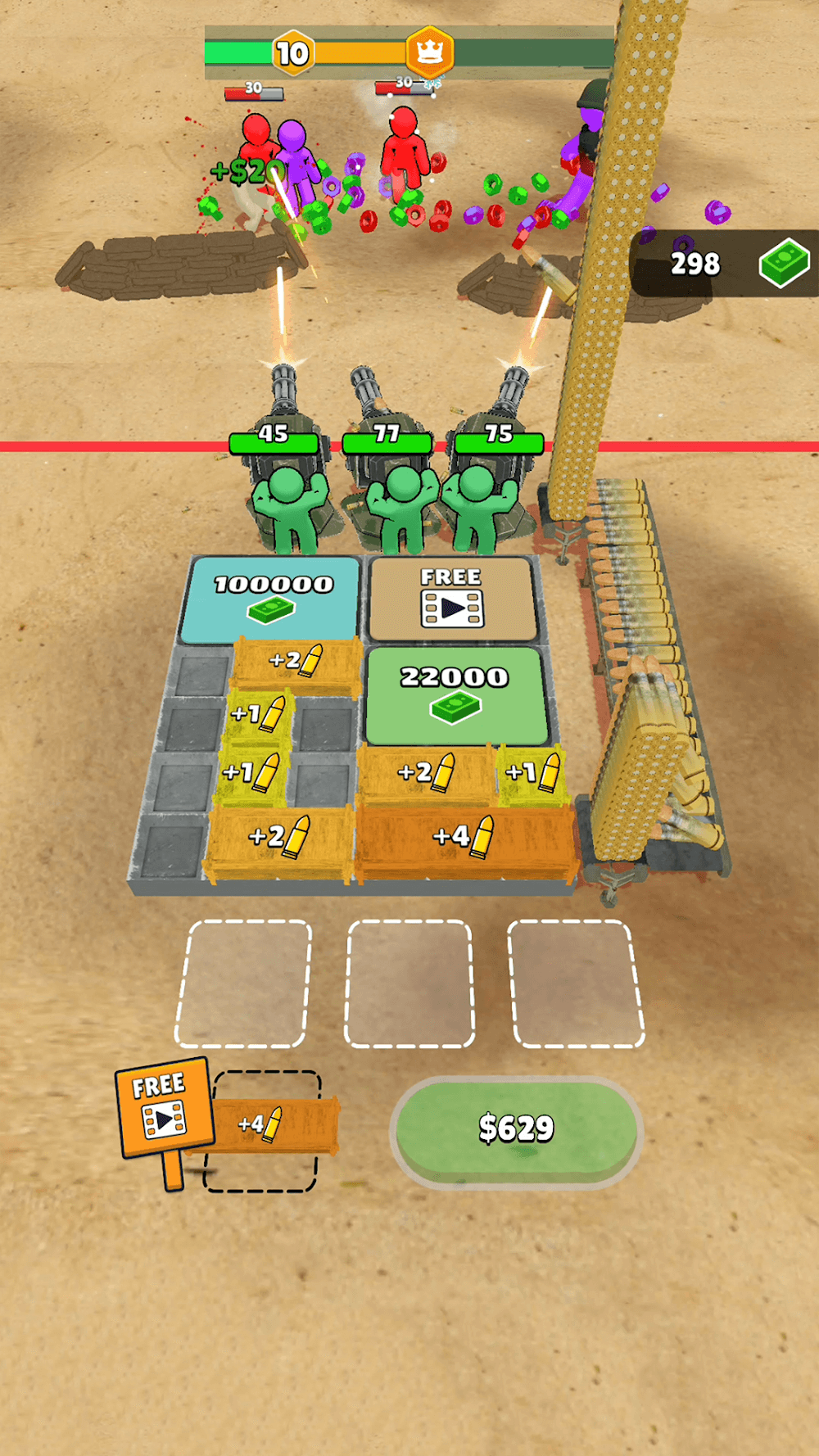 Defend your base, merge ammo, and survive the riot in Ammo Fever Mod Apk – the ultimate shooting challenge!Ammo Fever: Tower Gun Defense urges each person to participate in many battles against enemies in many different ways. In each battle, they need to shape their own abilities and upgrade their strength to fight against the enemy. Ammo continuously becomes stronger to destroy more enemies.MERGE-BASED WEAPON UPGRADESPlayers will enter extremely dangerous battles and use many different types of weapons. At the same time, the diversity of tactics is often constantl