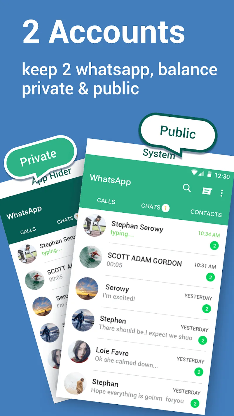 App Hider Hide Apps Premium ring chosen applications. The symbols of these applications will moreover be covered up effortlessly. The method of performing these operations will not require root. All chosen applications will quickly disappear from the screen.DUAL ACCOUNT SUPPORTIn any case, in the event that clients have numerous diverse devices, how can they access the mystery vault that they have put away? That’s, you’ll set up an account where you’ll be able to discover the things you need to stow away. Be that as it may, you’ll be able to get to 2 places at the same time. In expansion, there’s no way a third party is permitted to know these things. That’s moreover what makes it completely secure.Two-Account Login: Clients who possess two accounts can log in and util