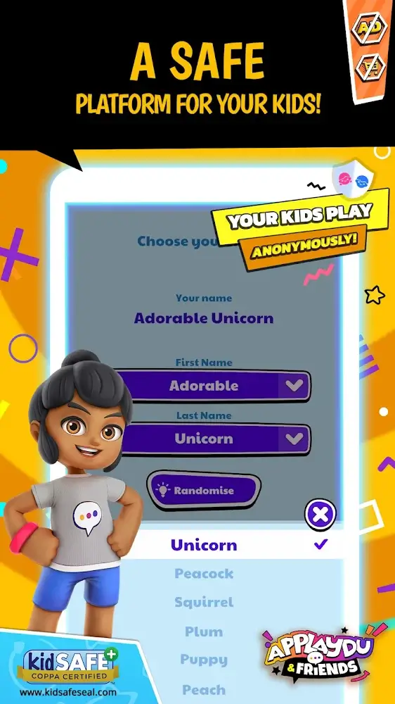 Applaydu Friends apk-en s to unlock. Players can also create their own racing heroes with over 20 mixed and matched costumes and participate in challenges, overcome obstacles in this epic dinosaur park.PLAY AND CONNECT IN A MULTIPLAYER EXPERIENCEApplaydu & Friends offers a safe multiplayer playground. Kids can communicate using emoticons while racing with their dinosaur friends, overcoming challenges and having fun in a friendly environment.Applaydu & Friends is a safe online community for kids aged 8+, with anonymous profiles and pre-defined names. It is a place where kids can explore, play and adventure in Jurassic World without worrying about online safety.