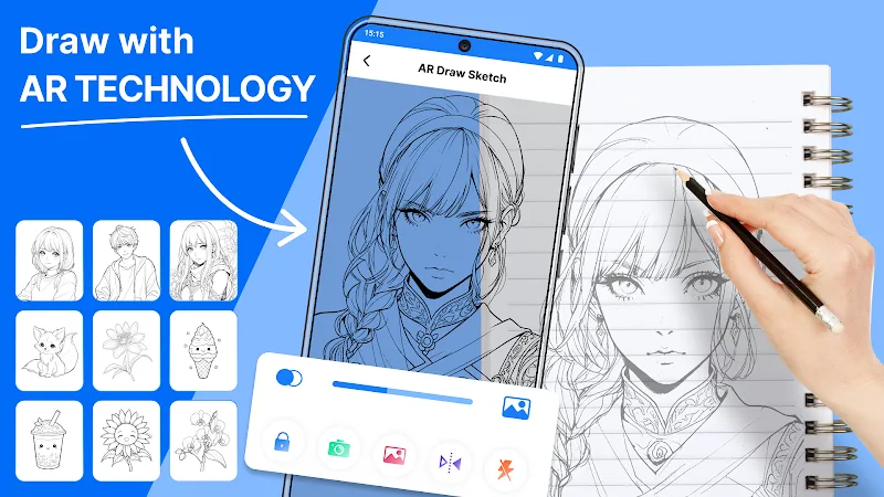 Ar Draw Sketch Premium sture, or even small details like folds on clothes are accurately reproduced. You can even redraw scenes in the room to create a background for the character, making the work more vivid and realistic.AR DRAWING ANIMEWhen using this application, your creativity will be powerfully explored. The application provides outstanding features to help you create the most unique and professional drawings possible. This uniqueness is highly appreciated when you can shorten the distance between you and your favorite anime characters through painting.Specialized Anime Tools: When drawing Anime characters, in addition to painting skills, users need additional specialized tools. The tool is what helps users customize and create characters according to their wishes. For users who are fans of Anime characters, the tool will help