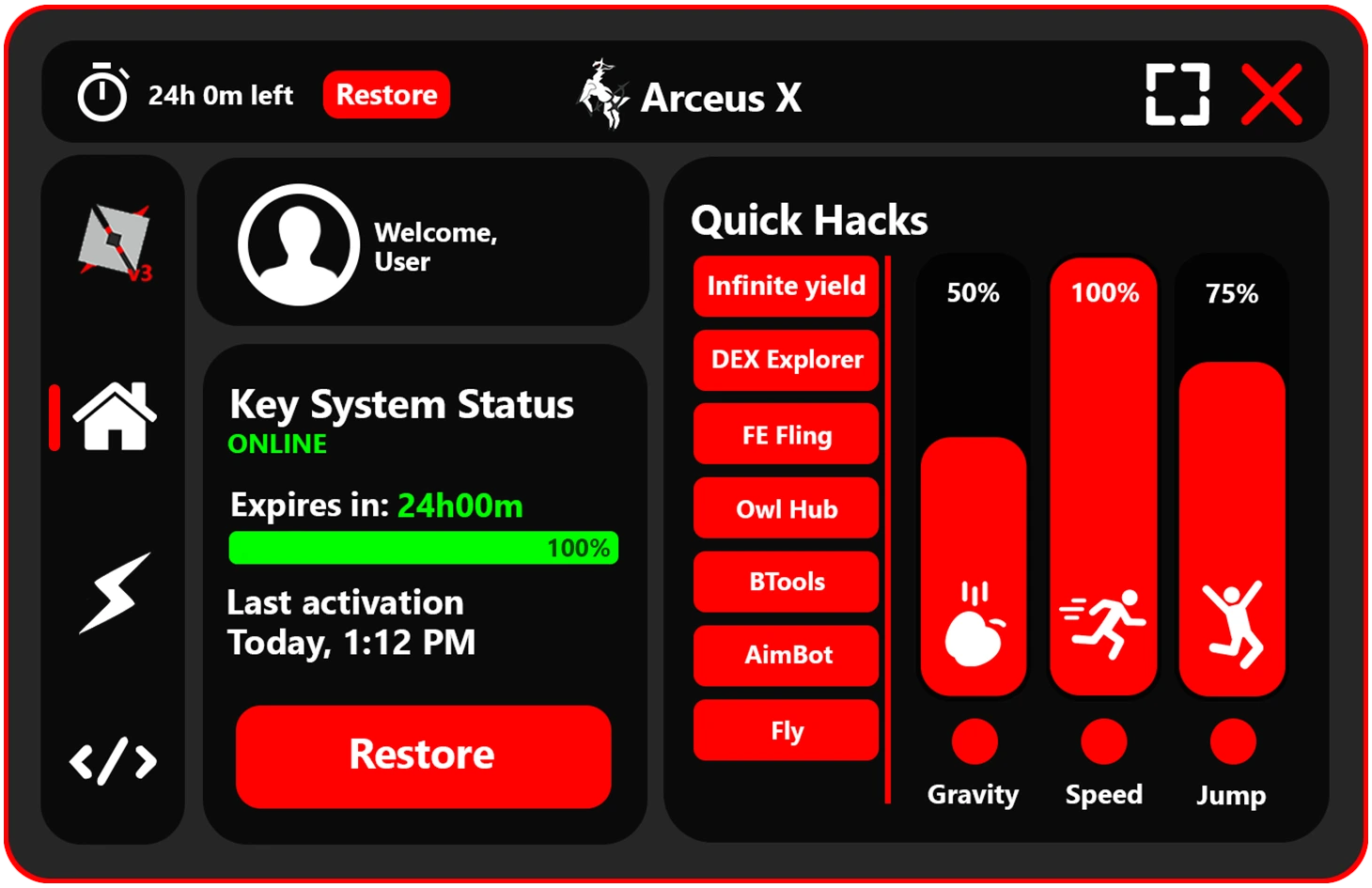 Arceus X Neo apk-en with abandon. This kind of freeform building is only possible with btools, giving you god-like construction powers on mobile.Create or destroy: Powerful building tools let you create or destroy anything.Impossible structures: Build impossible structures or remove entire maps.Creative potential: Unlimited creative potential at your fingertips.SCRIPT HUBA huge collection of powerful scripts developed by the community takes your hacking potential to another level. With a script for practically any situation, you can do exactly what you want in any game. Auto-farming, auto-winners, GUI customization, teleporting, god modes, and way more are at your fingertips. New scripts are added every day as creators take advantage of the Lua execution. The script hub makes sure you always have an ideal hack for any game.Scripts and hacks: Enormous library of pre-made scripts and hacks.Just a tap: Tons of features to choose from with just a tap.Latest exploits: Constantly updated with the latest exploits and cheats.
