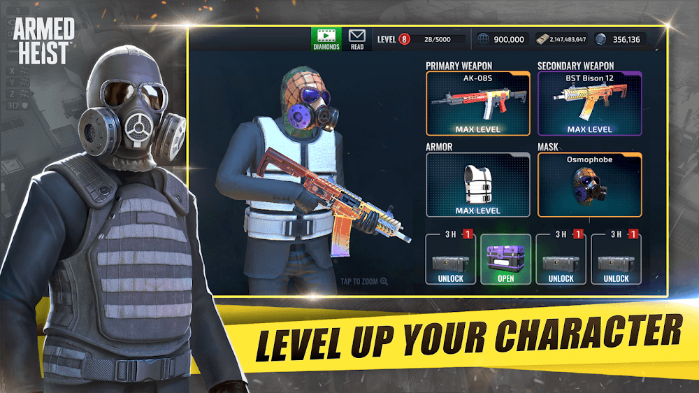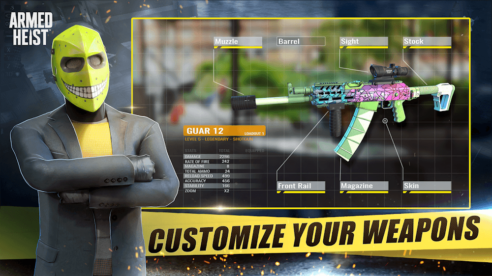 Armed Heist apk-en ach specific situation, come up with ways to deal with and apply gun skills.CUSTOMIZABLE CHARACTERSYou are an experienced bank robber, and these are your infamous missions. The game gives you a series of different customizations, and players will customize their characters in their own way. Players choose different coats and masks to hide their identities. Realistic graphics and vivid sound are the plus points of the game.Unique Personas: You will participate in bank wars and you will be a notorious robber.Extensive Options: Search for new mask styles, new armor, jackets, or costumes.Immersive Style: You can choose your own characters, such as gangster or special forces,…High-Quality Graphics: Impressive role-playing gameplay will help you gain new experiences. Not only that, but quality 3D graphics also create a highlight.