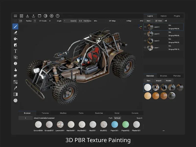 Armorpaint Mod Apk e application allows users to import 3D models and start the painting process. PBR textures are also clarified through the use of buttons or available tools. Each button will take on a role, and users can distinguish them through their names or symbols.Fully Procedural Materials: The materials applied to the drawing will be selected by the user. These materials are customized based on the characteristics of the object and the user’s creativity. The drawing process will be fully supported by the tools available in the application.Custom Procedural Brushes: Users can freely choose any type of brus