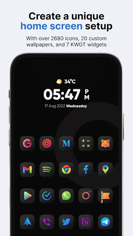 Athena Dark Icon Pack Mod APK: Personalize your phone with vivid icons, dynamic wallpapers, and interactive widgets.THE MAGICAL APPEAL OF ATHENA DARK ICON PACKWho wouldn’t want to doll up their mobile home screen and app drawer to levels of extraordinary allure? After all, we all spend considerable time each day caressing our smartphones. It’s time to transform that routine task into an elevated experience, and it’s all possible with the Athena Dark Icon Pack.A PERSONAL TOUCH WITH ATHENA DARKYou wouldn’t want your living space to be generic. Then why let your phone look like everyone else’s? The Athena Dark Icon Pack allows you to customize your phone just how you want it. With 2,690 icons, 20 unique wallpapers, and 7 KWGT widget