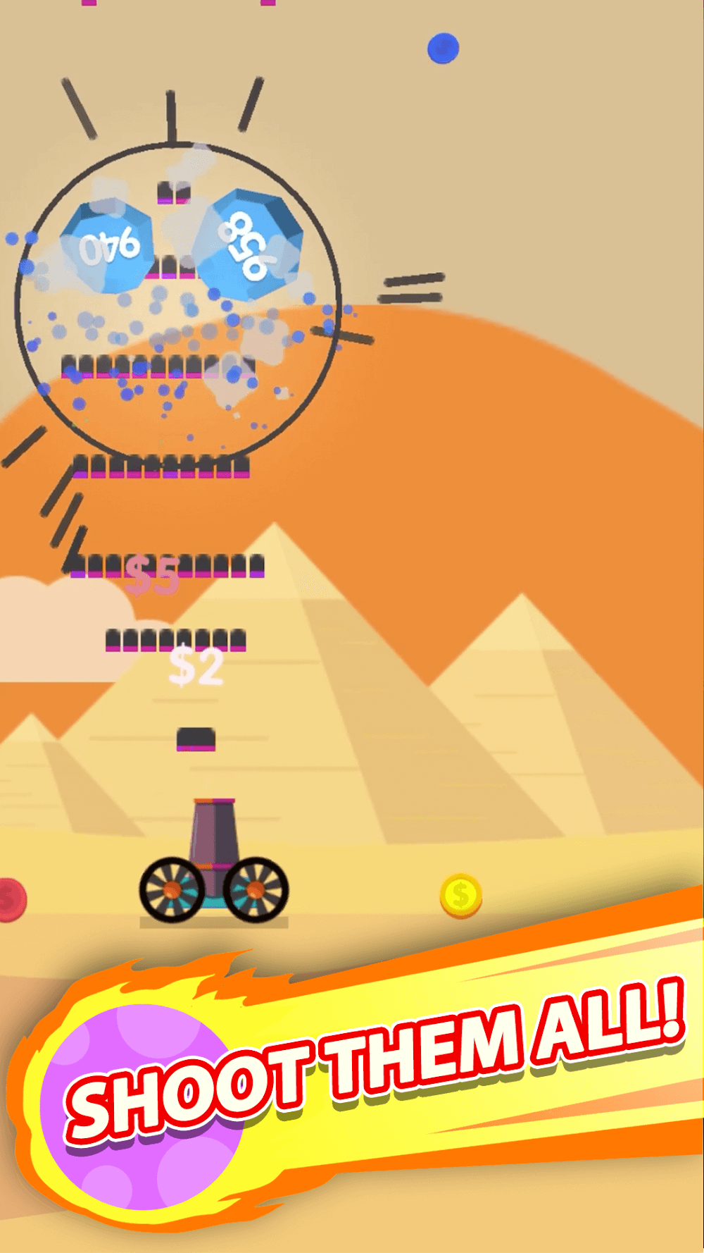 Players need to determine their mission in Ball Blast Cannon blitz mania is to destroy different attacks on their galaxy. The game is interesting, you control the cannon to perform challenges, shoot rocks to prevent them from attacking the world. What you pay close attention to is avoiding falling rocks that crush the cannon, quickly shoot and reload continuously.ADDICTIVE GAMEPLAYThe game takes you to interesting challenges and increases with each level. The higher the level, the more enemies you face; they can hit you anytime. What you need to do is upgrade the gun and reload it to make the shooting process more accurate, fast, and effective.Smooth controls: Players will start from low levels, and enemies will appear at low frequencies. Then you will face more enemies, more intuitive and intere