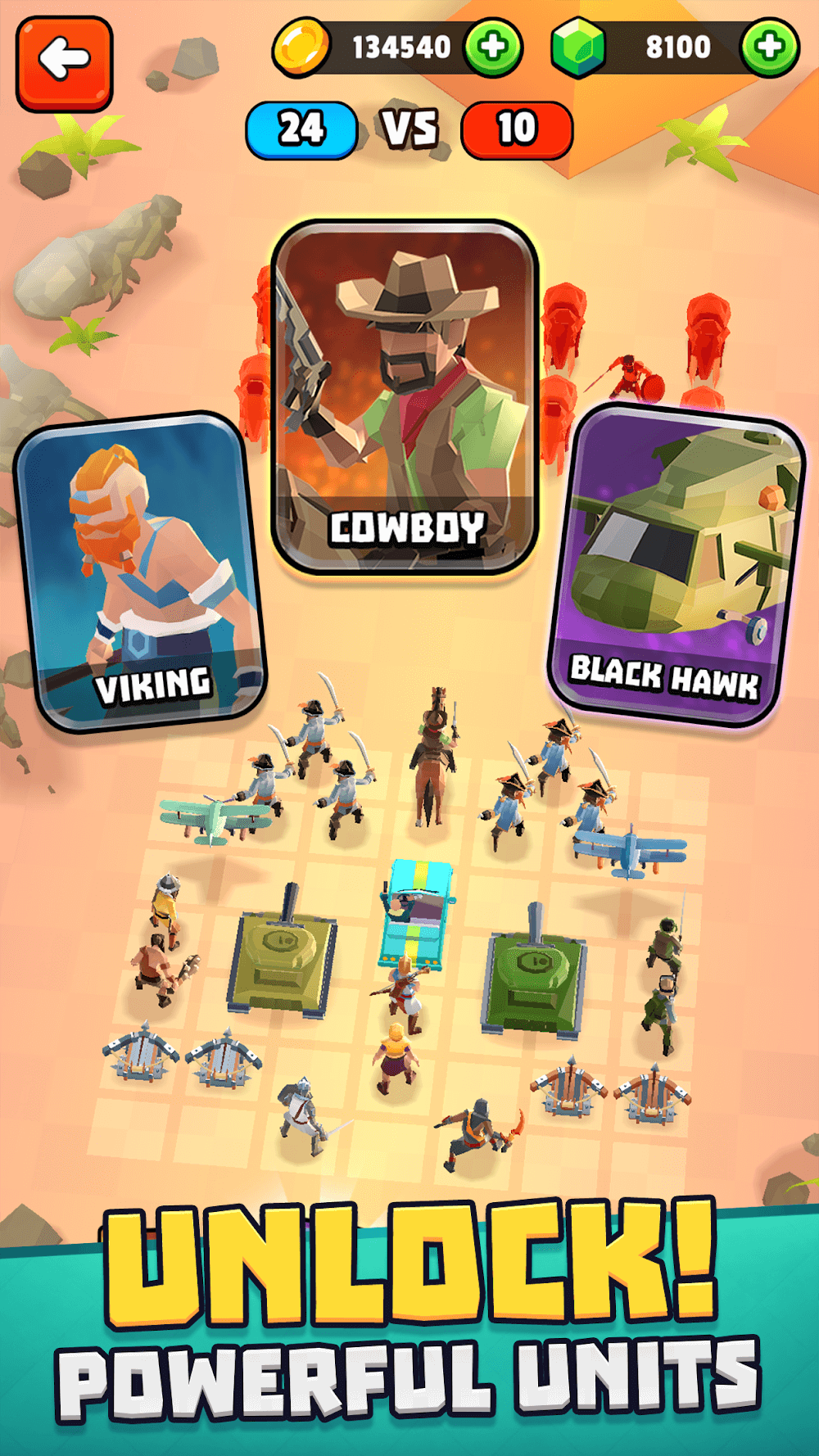 Battle Simulator Warfare Mod Apk erse Units: The system often allows each person to access many powerful allies. Of course, they can be pirates, samurais, and helicopters in each historical period.Unique Abilities: They often have unique skills to help you in each battle. In particular, reasonable combination is often the main mechanism to defeat the enemy.Customizable Army: Players will be able to take advantage of resources to upg