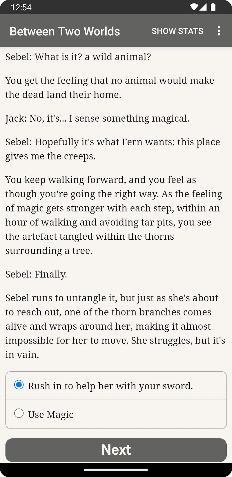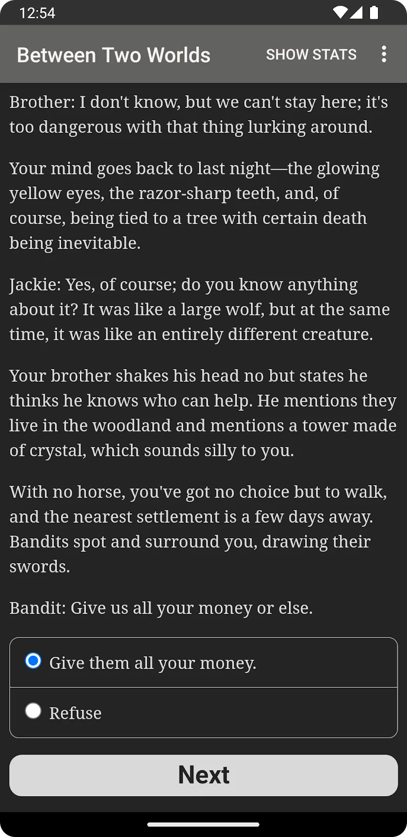 Between Two Worlds is an interactive role-playing game that any player who loves this genre should not miss for their collection. The game will bring its players a gaming experience when adventuring with the main character through the writing of a 40,000-word novel written by Liam Parker. Players will not be limited to any graphics, sounds or colors but instead are limited to the pages of writing and their endless imagination.IMMERSIVE STORYLINESelect stories to memorize more insider facts, as well as examine critical clues. The amusement energizes you to act, espec