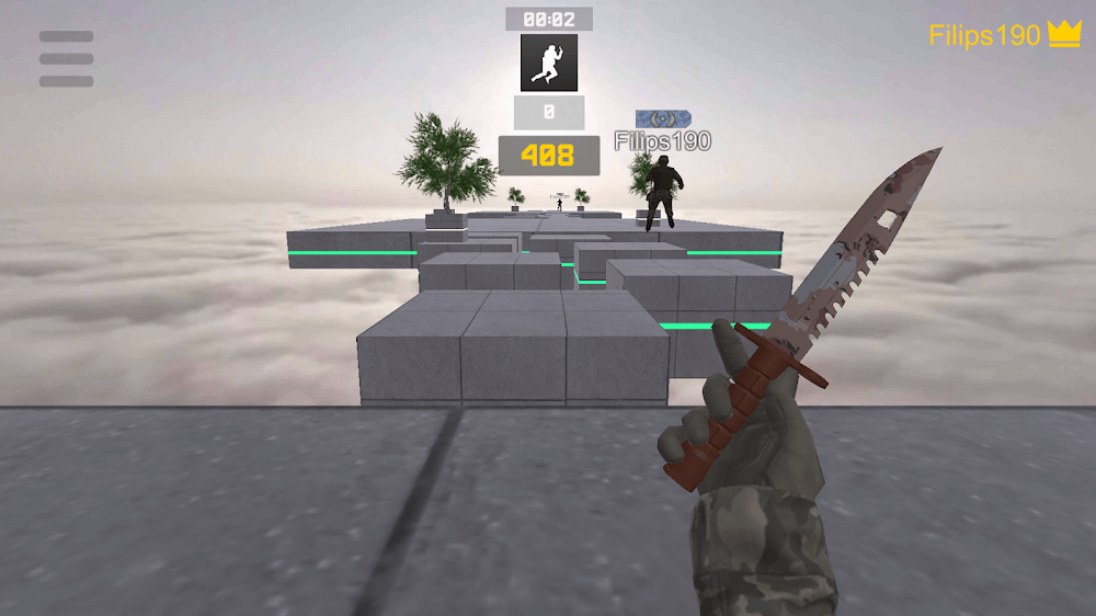Bhop Pro Premium modes to get used to battle speed. Your achievements will be aggregated to compete with other warriors on the leaderboard. The main screen will display important information, such as coins, achievements, treasure chests, and rewards. Players can proceed to upgrade power after collecting enough items. Arenas will be timed using an automatic timer. Operations are forced to stop after the combat time is over.Players will use the knives of Bhop pro to complete their tasks. Your opponents will appear in ev