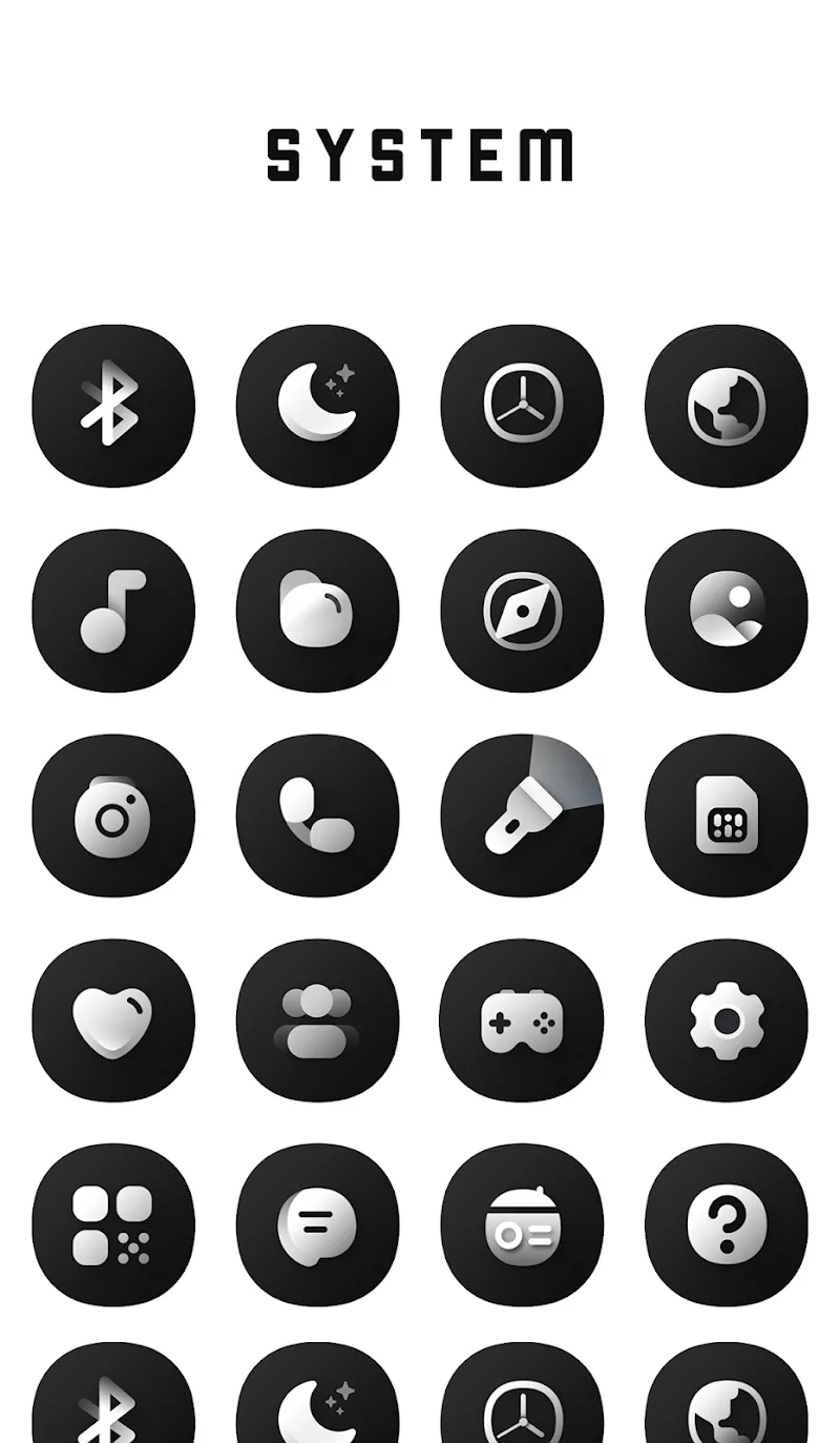 If you are a lover of black, Black Icon Pack is the perfect choice for you. Coming to this application, you will come to extremely sophisticated and luxurious black icons. Not only the icons, but the application also gives you an extremely complete set of tools for you to use and edit quickly. What are you waiting for without coming to this application to make your phone more beautiful?EXTENSIVE CUSTOMIZATIONComing to this application, you will come to extremely extended customization features. These features will help you edit and beautify your device quickly and easily. Bringing you extremely attractive and interesting experiences.Vast icon library: The application brings you an extremely rich and diverse icon library. Icons with diverse themes and the most modern designs. Brings you extremely perfect and quality icons to use.Versatile shape options: Coming to this application, you will quickly be able to choose extremely diverse and rich shapes. You will come to icons with attractive shapes, so that you have the most perfect and satisfying interfaces.Exclusive wallpaper collection: The application also brings you an exclusive wallpaper collection. You will come across extremely high-quality and diverse wallpapers. Extremely exclusive images will be brought to you, turning your phone into an extremely luxurious device.HIGH-QUALITY DESIGNComing to this application, you will come to extremely high-quality designs. Bringing you the most luxurious and sophisticated interface.Sleek 3D style: The application brings you icons with extremely vivid and sophisticated 3D designs. Bringing you extremely attractive and engaging experiences.Elegant monochromatic look: Coming to this application, you will come to an extremely elegant monochrome look. You will own an extremely luxurious and sophisticated interface, making you fall in love at first sight.Meticulously crafted icons: The icons are designed meticulously by hand. You will own perfect and sharp icons down to every detail.