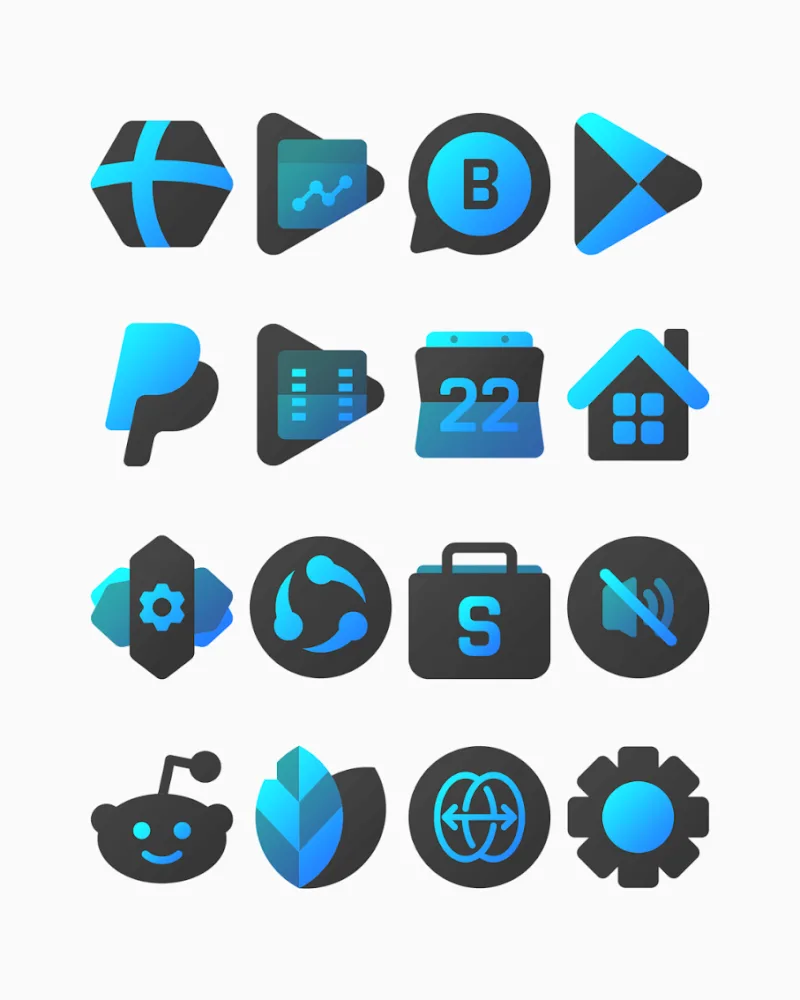 Bluediant Icon Pack Premium risp, clear visuals: The icons in this application all have extremely sharp image quality. Clear details with harmonious colors will bring you extremely soft icons, giving you the perfect interface.BROAD COMPATIBILITYThe icons that the application brings to you have extremely large compatibility. The applications in your device will be covered, even the applications that are rarely used.Numerous popular launchers: Coming to this application, you will also be introduced to extremel