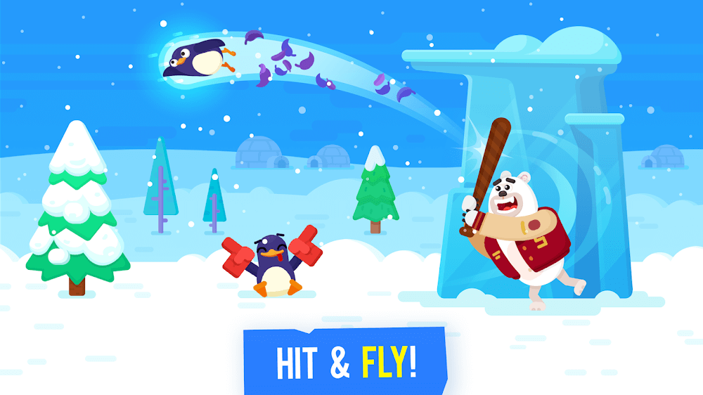 Bouncemasters 2 apk-en main character fly there. It will stand on a high block of ice and jump down to receive a push from the polar bear and with this push, it will continuously fly until it lands. On the way, if the force is not strong enough, the penguin may fall down but there are seals to help you bounce again. It can be seen that there are many environments and mechanisms for you to increase your speed, so just by flying many times, the goal of falling in love will be achieved immediately.