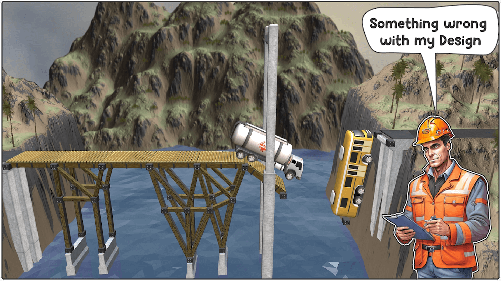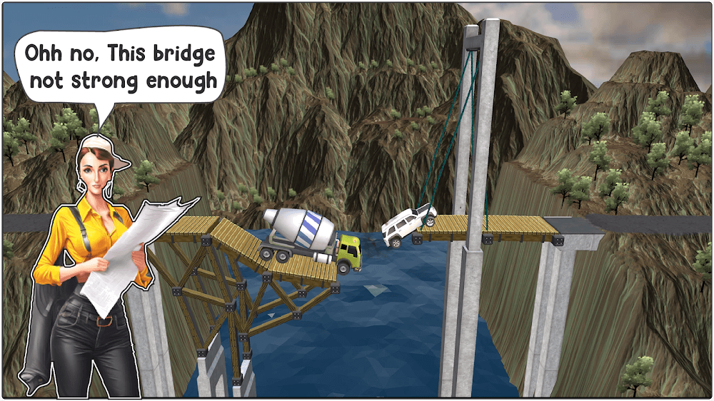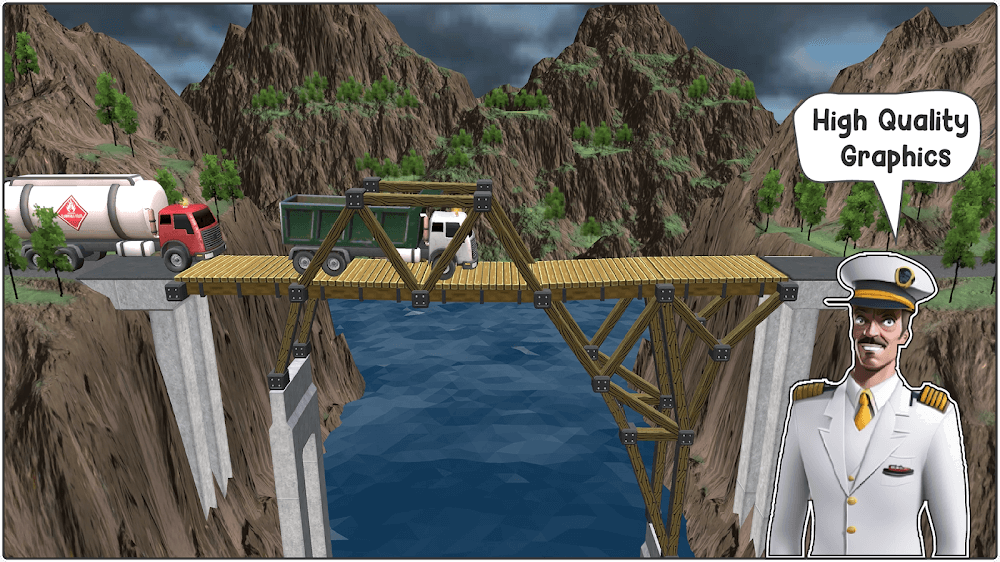 Bridgezz Bridge Construction Mod Apk capacity and durability.Authentic Stress Response: In the role of a construction engineer and architect, players will face many challenges. Cliffs and isolated areas require a sturdy bridge. Players will have to research and build a bridge that meets the requirements. Many tools and skills will be used to support this work.Structural Weakness Insight: After completing the construction, the player will have to re-examine it. This work will take a long time, but it proves the durability of the construction. The player needs to fix the errors in the process of building the bridge. They will have to adjust to build a new, better bridge.Dynamic Load Reaction: Giant trucks will move across the