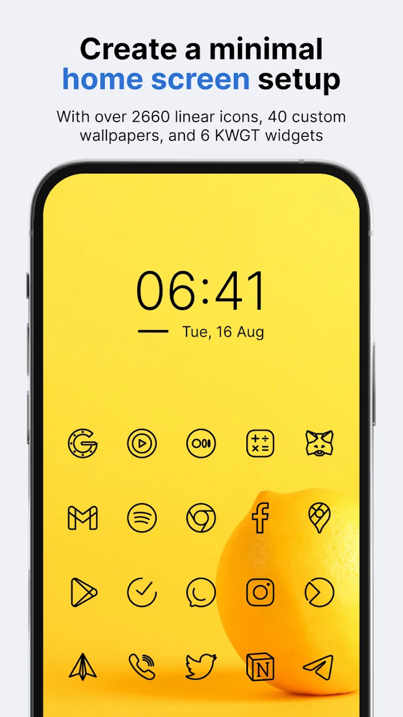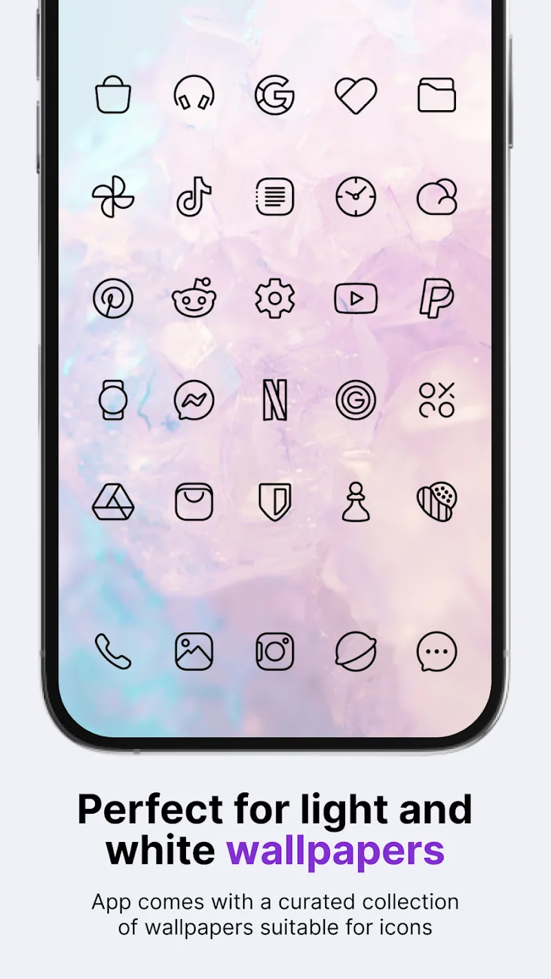 Caelus Black Linear Icon Pack Premium At the same time, it is worth noting that all icons inside are completely empty.Use for various creations: The lines are not too thick, so elements often sync when they are close to each other. You can style them together without any major issues.THEME COMPATIBILITYOnce you are satisfied with the icons, try other resources to complete the customization. Users can quickly grasp the style and create harmonious coordination.30 Bright Wallpapers: All elements are black icons, so you can’t use wallpapers that are