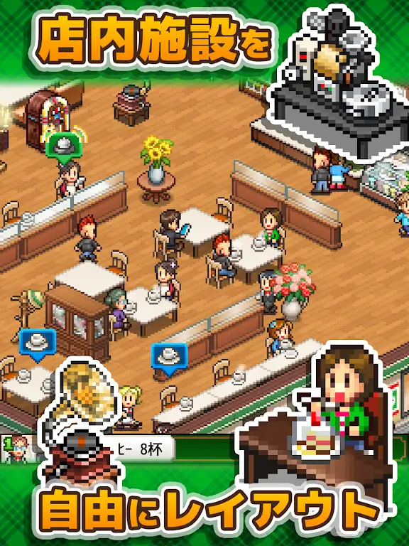 Cafe Master Story apk-en ent, Cafe Master Story ensures that gameplay remains seamless and intuitive. Supporting drag-to-scroll and pinch-to-zoom functions, it’s clear that the game values user experience, keeping the focus on your coffee shop’s management.MORE THAN JUST A GAME: A COMMUNITYSearching for “Kairosoft” reveals many games, marking Cafe Master Story as part of an extended family. With free-to-play and paid games on their site, it’s clear that Kairosoft aims to cater to all tastes. Following them on Twitter lets you stay updated with the latest news and information, transforming your gaming experience into a community endeavor. Enjoy the pixel art series, and dive deep into the world of Kairosoft – a hot cup of coffee from Cafe Master Story in hand.