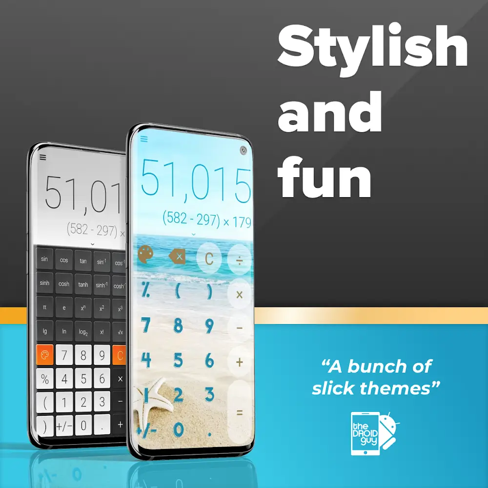 CALCU Stylish Basic Calculator is not only a calculator but also beautiful. The application is designed with an extremely modern and luxurious beauty, along with convenient calculation tool features that will be a fashionable calculator for you. Coming to this application, you will be able to access the super-fast calculation capabilities, any calculation will be calculated quickly by the application and bring you the results in the fastest way. What are you waiting for without coming to this beautiful intelligence right now?SCIENTIFIC CALCULATORThe application will bring you scientific calculators with a variety of units. With this diversity, you can calculate everything without having to download too many applications with similar features, giving you the most convenient user experience.Advanced Operations: With this calculator, you can use it to solve advanced calculations without any difficulty, giving you accurate results in just a few seconds without making you wait long.Complex Problem Solving: The application will help you solve all complex calculation problems, no matter what unit of calculation the problem is in. You will not need to scratch your head to calculate manually. The application will quickly do it for you.USER-FRIENDLY INTERFACEThe application has an extremely user-friendly interface, with features and calculation tools arranged in a reasonable way. This helps you use it immediately without encountering any difficulties.Sleek Design: The application brings you an extremely stylish and modern design. This design is completely different from conventional calculators, giving you more enjoyment while using.Smooth Experience: You will also own a calculator that can calculate quickly and smoothly. Whether the calculation is long or short, the application will quickly calculate and give you the result in just a few seconds, without making you wait too long, giving you the most convenient application.