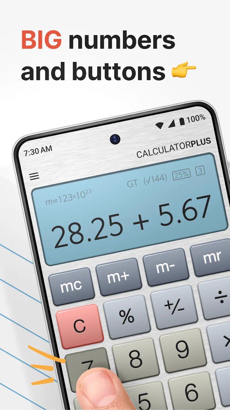 Plus – Calculator is an extremely useful and attractive application. With this application, you can quickly calculate without encountering any difficulties. The application will bring you the most professional calculation tools so that you can calculate and own the most accurate results. What are you waiting for and thinking about without quickly coming to this application right away?BIG BUTTONSThe application brings you large buttons. With these buttons, you can use them quickly and easily without encountering too many difficulties.Easy typing: With this application, you can type easily without encountering any difficulties or obstacles. Helps you type numbers accurately and perfectly, giving you a convenient experience.No mistakes: With this application, you will not encounter any mistakes. Brings you the most perfect, accurate, and precise calculations down to every number.Smooth use: The application brings you extremely smooth features. Brings you smooth and extremely smooth user experiences. Makes you extremely satisfied when using it.CALCULATION HISTORYThe application will also save all the calculations you have made. You can review your calculation history anytime you want, without having to do too many operations or recalculate from the beginning.Quick check: Coming to this application, you can check quickly without having to do too many steps. Brings you extremely perfect utilities and saves a lot of time when using.Error-free: The application will bring you a quick, easy, and accurate calculation screen. Without encountering any errors, you can use it perfectly and professionally. You can use these calculations with complete peace of mind without having to calculate too many times.Easy recall: In this application, you can quickly retrieve your calculations easily and simply with just a few simple operations, without having to use too many complicated and difficult processes. Bring you extremely attractive and convenient experiences.