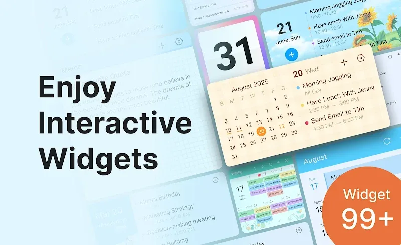 Calendar Planner – Agenda App is an extremely useful application brought to you. Upon coming to this application, you will come to extremely perfect features and tools so that you can quickly manage your schedule during the day in the easiest way. Coming to this application, you can add tasks, appointments, or any of your goals. And the application will support you in performing and completing it. Are you ready to come to this convenient application?ALL-IN-ONE CALENDARComing to this application, you will come to an extremely versatile calendar. This calendar contains all the utilities for you and you can use it without having to own too many applications with similar functions in your phone.View everything: You can see everything with this application, from dates to personal schedules. Bringing you an application that can not be more versatile.Switch easily: With this application, you can quickly and easily switch between applications without encountering any difficulties.Stay organized: The application will help you keep your work organized. You will come to an extremely useful application, helping you to arrange your work easily and quickly.DAILY REMINDERS & WIDGETSThe application will remind you of your work every day so that you do not miss any of your work. Not only that, the application also provides you with extremely useful widgets so that you can access the application more quickly and conveniently.Never forget: You will never forget or miss any of your work with this application. Because the application will always remind you to complete your work during the day.Instant access: You can access the application quickly and easily without any difficulty or obstacle. Bringing you a perfect user experience.Customize freely: Coming to this application, you can freely customize it according to your preferences and usage. Bringing you attractive and extremely interesting user experiences.