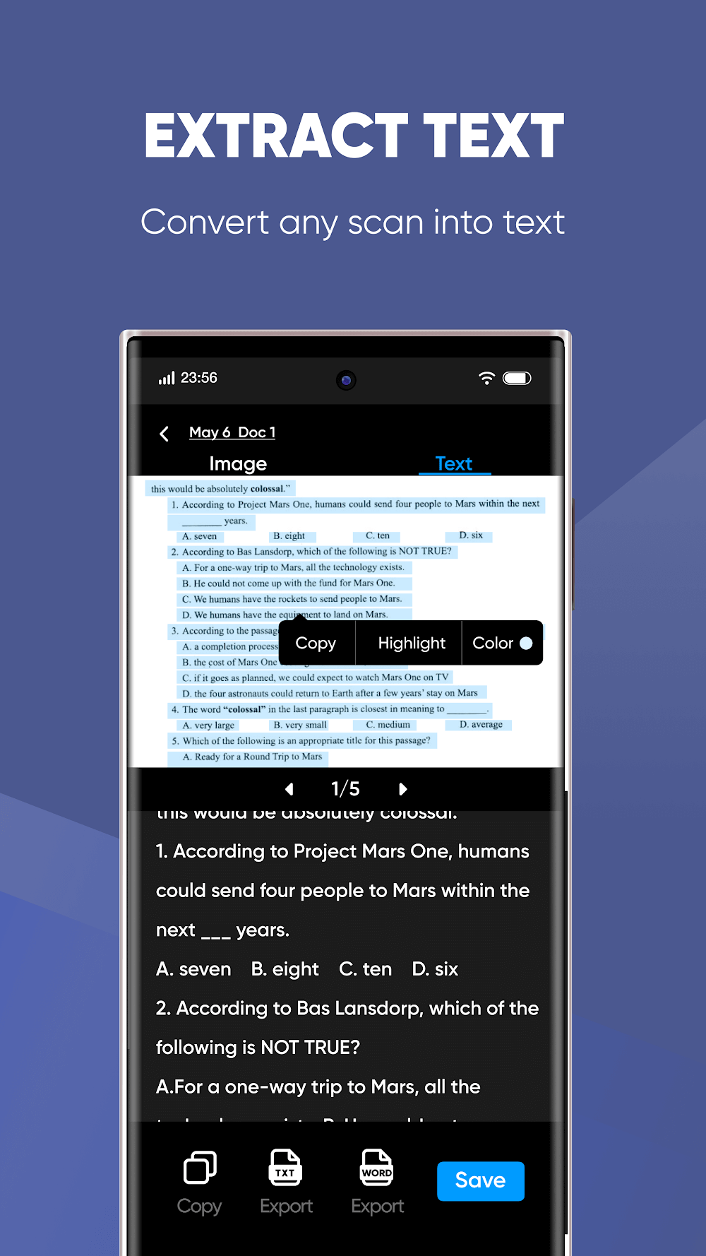 Camera Scanner MOD APK is a portable scanner, fax machine, PDF converter, text extraction tool, and document sharing platform that allows you to quickly, conveniently, and effectively scan office documents.Camera Scanner – PDF Scanner is an essential editor for those who often have to deal with office documents. Our mobile scanner makes it easy to deliver information with the fastest information processing speed. Every document is supported in every format, so you don’t have to do too many application c