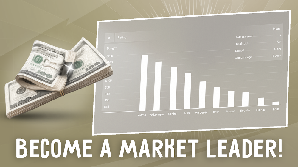 Car Company Tycoon apk-en omer demand: To be able to enter this fierce market and make a name for yourself, players need to offer innovation while still meeting user needs in the market.Become a leader in sales: Although it is quite easy to outperform an AI in the game, to become superior to other players in the rankings, players need to constantly upgrade their production system.MANAGE YOUR CAR COMPANYThe first impression of gamers here may be that this is just a game that simulates building the most advanced motorcycle factory. However, as time goes on, it will be easier for players to realize that the problem here is that they are really trying to create a strong automobile business group, not just a factory. For this reason, in addition to producing cars, players may also need to participate in activities that help boost the financial aspect of the company, such as investing in other companies in this game.Make strategic choices: To make your corporation stronger, players need to pay attention to which party to invest in to get the most production advantage,Grow from a small startup: For players to be able to develop a corporation from zero, they will need to put in a lot of effort in this game, especially the initial financial part, to invest.