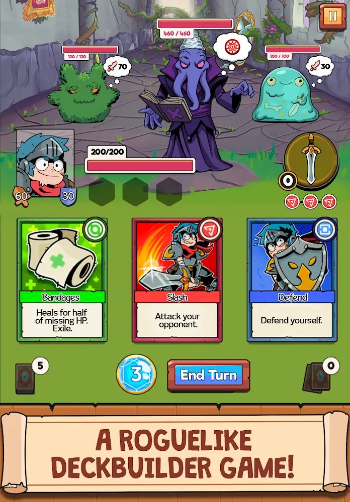 Card Guardians Rogue Deck Rpg apk-en e will be an energy bar that determines the number of cards you can use and if the same cards are activated, it will light up the box in the top right corner of the screen. When every empty box is lit, the effectiveness of that type will be increased as if you create a chain of 3 attack cards, at the end of the selection, the number of attacks increases by 5 times. Therefore, as time goes on, the number of cards you have will increase and many strange strategies will be created quickly.