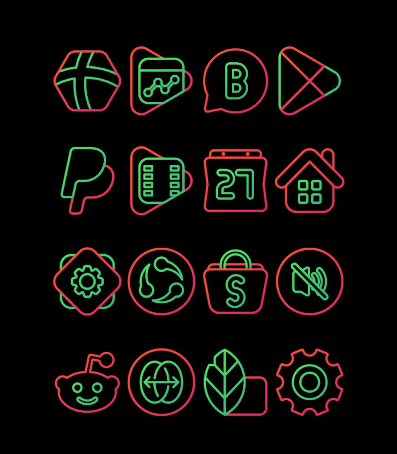Simple strokes can draw great ideas for the icon collection developed by Carol – Icon Pack. Users will be able to use unique style icon templates with characteristic red and green strokes. All icons in the pack are high resolution and clear when applied to the user interface.VAST ICON COLLECTIONThe icon collection contains many beautiful icon templates that match the style that users love. New icon templates are also updated to fill the icon list. Users are allowed to apply all the icons in the pack with just one tap.Icon variety: The application provides a large number of icons wit