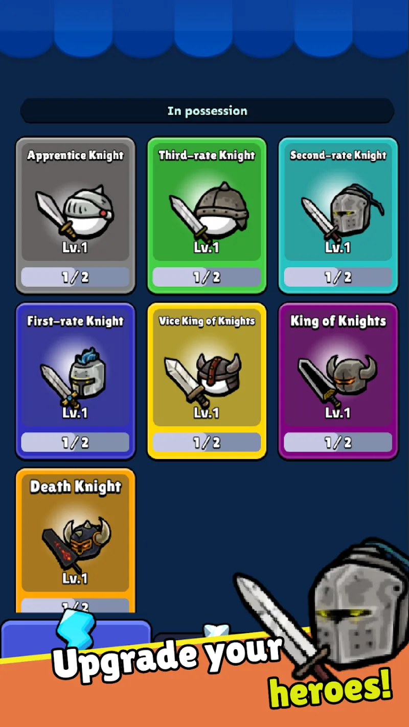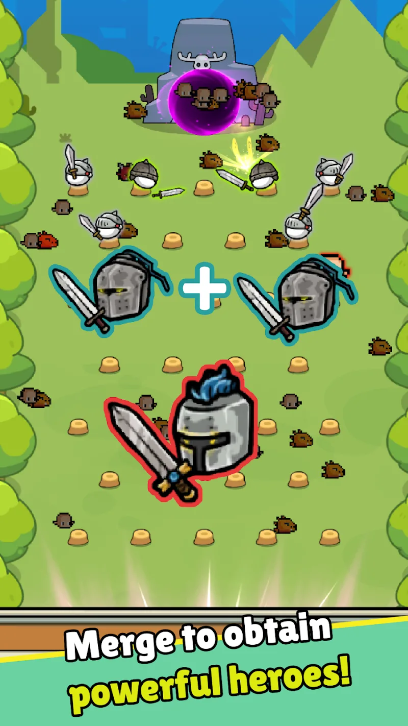 Castle Hero organizes battles according to each level. Players will be commanding a powerful army. They include many combat units classified according to each level. Players need to decide the position of the warriors in the arena. The arrangement strategy plays a decisive role in the battle.MERGE AND UPGRADE HEROESEach hero has its own power level. Players will have to combine weak heroes to create strong heroes. The player’s combination will unlock the ultimate combos. Combat units will be formed from the player’s combination chain. They will have to prepare their forces before the rapid increase of monsters.Unlock Hero Power: Player