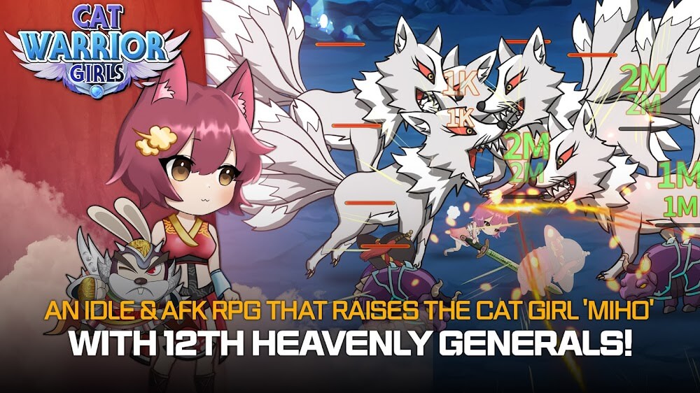 Cat Warrior Girls Afk Idle Premium ions, improve your character’s stats, and use the creatures you catch to your advantage. However, be wary because encounters with formidable bosses are the last test. Taking down such powerful adversaries will test your mettle. Can you handle the pressure?LET YOUR CAT-LIKE STRENGTH LOOSE IN BATTLE!Cat Warrior Girls: AFK Idle is the ideal place to show the world you have what it takes to be a warrior. Acquire various weapons and divine artifacts to increase your combat effectiveness. Enhance the effectiveness of your equipment using enchantments. When ready, go into player versus player (PvP) combat and prove your worth. Use your swordsmanship to defeat your foes and cement your place in history.GET IN TOUCH WITH YOUR INNER KITTY WARRIOR.You’ll be fascinated with Cat Warrior Girls: AFK Idle’s lovely and quirky graphic design and fascinating gaming mechanics. Miho, our cute cat g