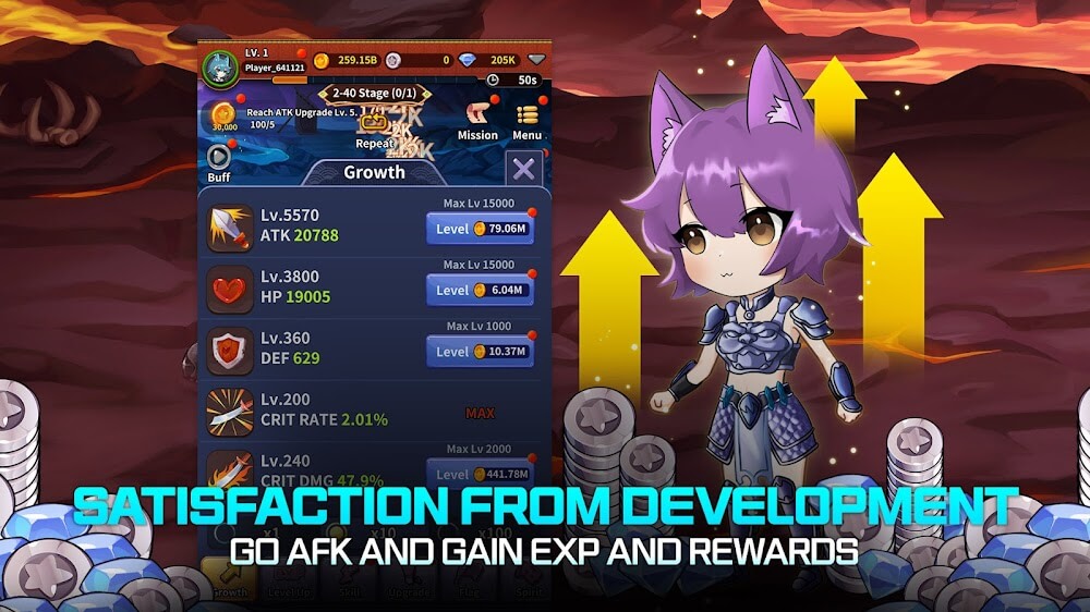 Cat Warrior Girls Afk Idle Mod Apk in the stylish destruction you can wreak. The thrill of annihilating one’s adversaries with such skill is unparalleled.THE WAY TO ABSOLUTE DOMINION!There is no limit to your character’s development in this game. The many development mechanisms in Cat Warrior Girls: AFK Idle allow you to improve your character’s stats steadily. What’s even better? Nothing prevents you from doing everything when away from your keyboard. You may kick back and enjoy the ride as your character steadily levels up and earns prizes. The visual effects of your movements get more impressive as your character’s strength increases, creating a breathtaking experience.FIGHT YOUR WAY THROUGH MAZES AND TAME MONSTERS!In Cat Warrior Girls: AFK Idle, you’ll explore a world full of unique dungeons. The game’s auto-hunting function makes slaying monsters in dungeons a breeze. Fight through difficult situat