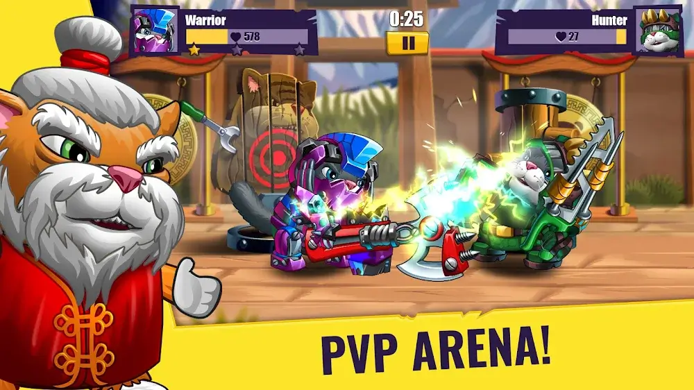 Cats Vs Aliens Pvp Premium the RPG genre. Cats vs. Aliens PVP owns a variety of cat warriors with different stats. Your cats will be equipped with more weapons from melee, including hammers with shields, swords, axes, and even guns. Your firepower can also be enhanced by upgrading cat warriors to give them more stats like more HP, better defense, and more, along with an upgraded crafting system. Weapons will give you the tools to kill enemies faster. You will collect materials to create high-class weapons, then upgrade them and equip skilled cats. Power up your warriors and crush your enemies with powerful firepower.ATTRACTIVE REW