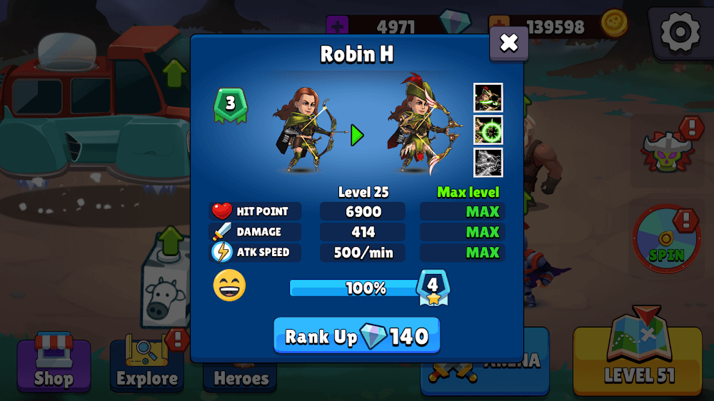 Chaotic War 3 Legendary Army apk-en them down and destroy the boss together.INCREASE THE STRENGTH OF THE HEROFierce warriors only improve their abilities in the early stages; Later clashes require an upgrade. Players can transform themselves into giants with various weapons that can be changed to suit their needs. Wear armor, a sword, and a bow to aim bullets at enemies. Special energies are also infused into them so that they become true warriors. Players require a certain amount of diamonds to enhance hero development. Move them to the next level, be proficient, and have a layer of defense to avoid battle fatigue. Level up all your troops without biasing any of them.