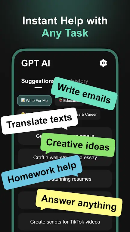 Chat With Gpt Ai apk-en a useful and comprehensive experience. Besides, the application also encourages users to develop themselves through useful suggestions and information, helping them gain new knowledge and skills.Provide information immediately: Users can ask any question and receive an answer immediately. This feature is very useful for those who need to quickly find information or answer questions in a short time.Personal recommendation: The application provides personalized recommendations based on user preferences and needs. This feature helps users explore new and interesting fields, creating motivation for lively conversations.