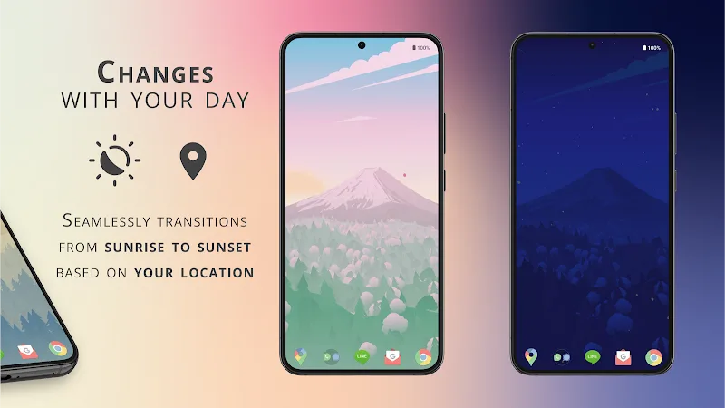 Have you ever searched for an app developed to easily design your home screen on your device? Then Chill Vector Live Wallpaper is a great option you shouldn’t miss for your collection of favorite apps, with its attractive features. The app provides users with a collection of carefully designed live wallpapers to make opening your device a peaceful experience.BATTERY-FRIENDLY PERFORMANCEOne of the most important aspects the app aims to offer users is the performance of its live wallpapers. Therefore, the app guarantees that the installed live wallpapers will operate energy-efficiently. Users will always receive the smoothest-moving wallpapers on their devices. They operate beautifully, yet they occupy a very small portion of your device’s storage space.Smooth Visual Quality: The app delivers smooth, beautiful animations optimized to minimize power consumption.Lightweight Device Design: The lightweight design ensures seamless operation across all devices without compromising image quality.Proven Power Efficiency: Users achieve proven efficiency, eliminating the guilt of enjoying stunning visuals while maintaining device longevity.DAY-RESPONSIVE CUSTOMIZATIONIn addition to providing high-performance animated wallpapers, the app offers users stunning themed wallpapers. The app aims to create wallpapers that display in real-time throughout the day, providing smooth, cyclical transitions between day and night. Furthermore, users can also experience the actual weather outside, which is directly simulated through the wallpaper.Natural Daily Transitions: The app features intelligently transitioning wallpapers from sunrise to sunset based on your location.Real-Time Weather Effects: The system provides live weather effects such as rain and snow, reflecting your local weather patterns in real time.Customizable Personal Experience: Users can fully customize settings to personalize their relaxing experience exactly as they wish.