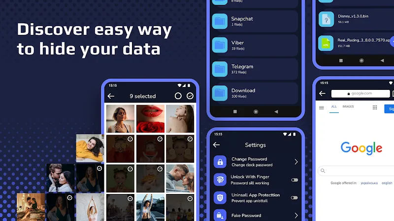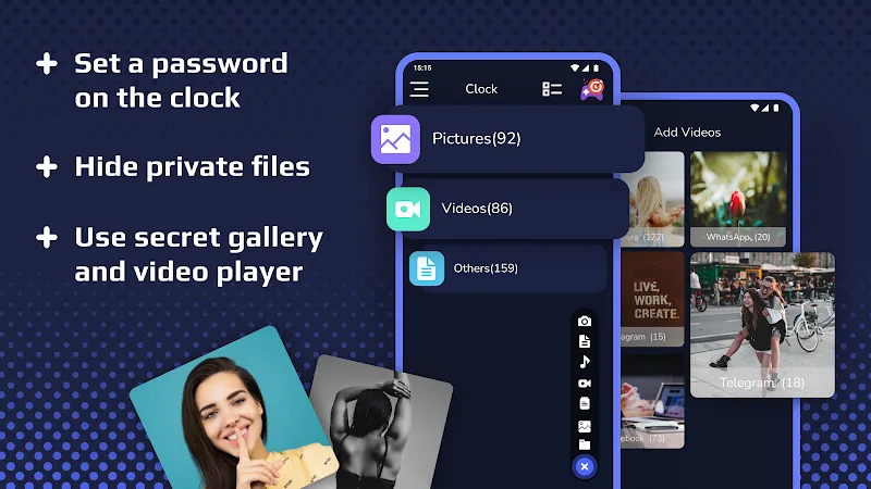 Clock Vault Secret Folder apk-en on.Clock Disguise: The clock on your phone is the place for you to store your private photos in absolute safety without anyone being able to intrude, giving you a completely new and unique security experience.File Management: The application also provides you with an extremely optimized manager. This manager will automatically categorize your photos and files by time so that you can search quickly and easily without taking too much of your personal time.