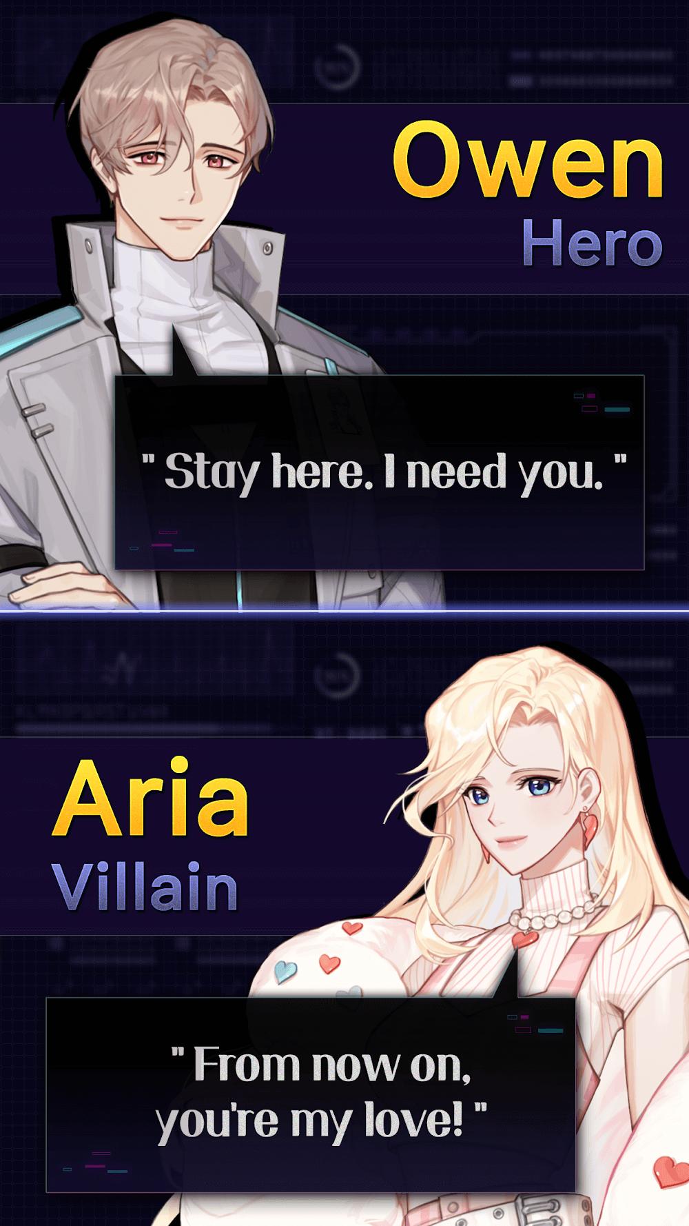 Code Name Romance Story Premium remely interesting and attractive gameplay that will immerse you as if you were really living in this world.CHARMING CHARACTERSThe game will bring you countless unique characters with extremely interesting and attractive personalities. Each character will bring you different, attractive stories, giving you extremely captivating moments of entertainment.Dangerous characters await: Not only are there lovely characters with gentle personalities, but you also encounter evil characters with e