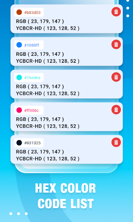 Color Detector Catcher Mod Apk eople when they can use it in many ways. Therefore, an accurate search tool becomes extremely necessary.Instant Color Capture: The application can operate at any time the user needs. Therefore, with just a simple touch, the feature can be activated and the color can be recognized immediately.Multiple Color Codes: The colors will be encoded by the system and quickly identify information for the user. If you are using RGB color type, the information will appear