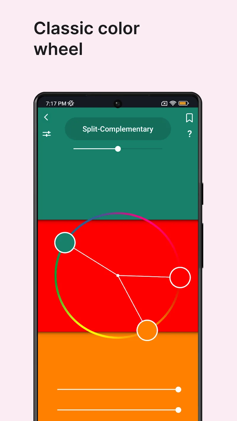 Color Wheel Premium y attractive color palettes so that you can create the brightest pictures.Ensures Harmonious Schemes: The application will bring you extremely perfect features. These features will help you mix the most harmonious and quality colors for yourself, without encountering too many difficulties.VALUE ANALYSIS TOOLSThe application also brings you extremely attractive and convenient tools and features. These tools will bring you the most accurate value analysis tools. Bringing you extremely rich user experiences.