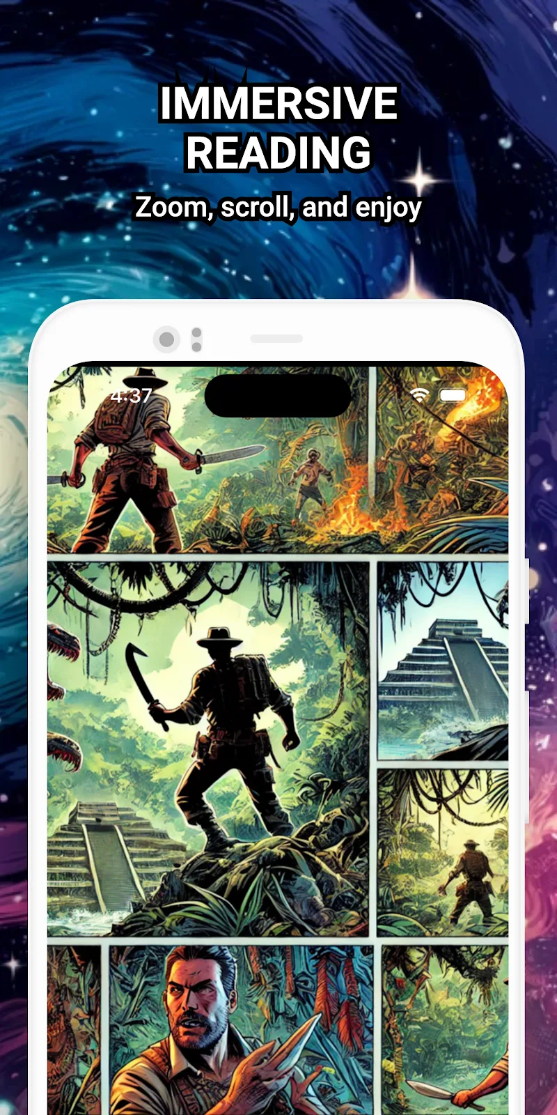 Comic Reader Cbr Cbz Pdf apk-en of all formats.Resume where stopped: In the app, you can turn off ads for a small fee. This helps support the reader’s work and makes reading more comfortable. You can manage CBR, CBZ, and PDF files on your device, and the reader will help you get lost in the amazing world of comics.Distraction-free reading: Users can zoom, use a magnifier, and go full screen for more efficient reading. The app also improves performance by saving reading progress in memory for faster reading and multitasking. You can discover 150 new comics in less than 10 seconds, and open the library in less than 3 seconds.