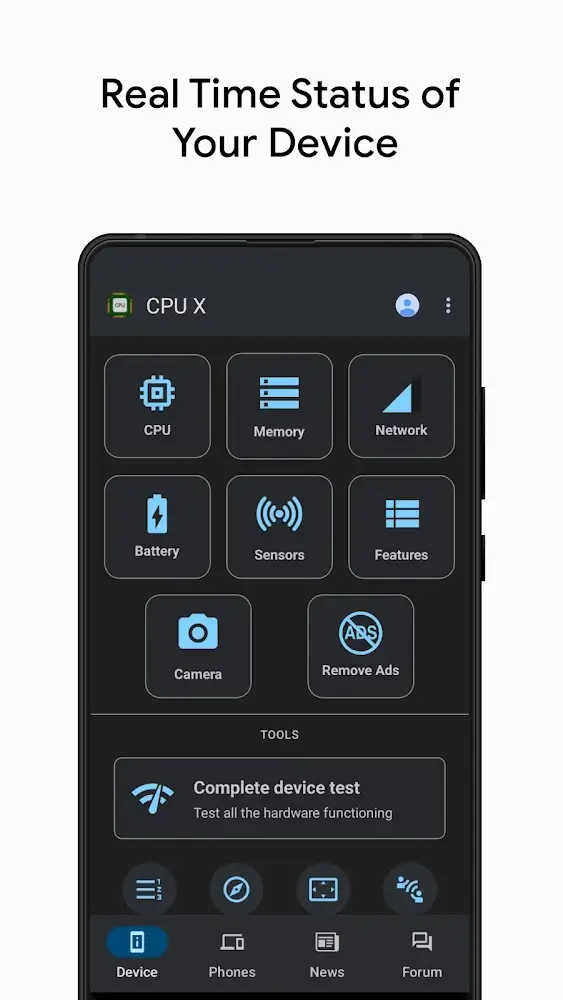 Cpu X Mod Apk ew processor power, RAM, available storage, and battery health. The application also allows users to view the dimensions of each different machine. However, if you are intending to buy a phone and are wondering, the application will help you consider it. It is this feature that the application has scored a lot for the users and makes them happy to use.LEARN MORE ABOUT USING DEVICESBesides the user being allowed to check the device-related information, you can still measure the network speed to see the current download and upload speed in the notification and the combined speed in the status bar. Users
