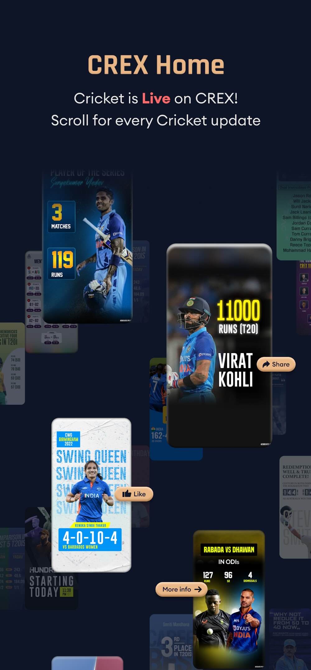 Crex Cricket Exchange Premium s are only for India. You definitely won’t be able to watch these exclusive live streams anywhere else but this app.Seamless Viewing Anywhere: With this app, you can watch your favorite broadcasts anywhere and anytime without any difficulty. Bringing you extremely interesting and attractive entertainment moments.IN-DEPTH CRICKET COVERAGEThe app also brings you extremely detailed cricket tables. The scores, information, and matches will be brought to you in the most detailed way without you having to search for information in other news sources.Live Match Updates