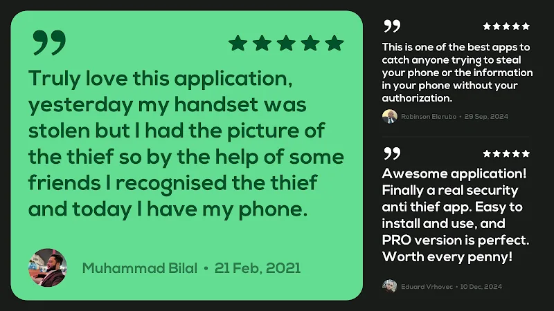 CrookCatcher • Anti-Theft is an application designed to provide useful experiences that users can change the way they use their technology devices. The application will provide users with the ability to protect their mobile devices in the safest way against illegal intrusions by others without permission. Through this application, users will no longer have to worry about their devices being attacked by strangers without their knowledge.INTRUDER DETECTIONOne of the most special features that this application can bring to its users is the ability to detect strangers who are trying to break into the device. The application will operate through the device’s password setting mechanism. Whenever the device’s unlock password is not entered correctly, the application will detect and take a photo of the stranger. Through this, the application will send warning emails to users along with photos of the intruder so that they can be promptly resolved.Snap Without Fail: The application will provide an advanced photo capture system that immediately takes clear photos of unauthorized access attempts.Track Every Move: The system will perform real-time GPS tracking to accurately determine the location of your device when it is compromised.Alert At Once: Users will be able to receive immediate email alerts with detailed evidence to help them be notified within seconds.STEALTH OPERATIONIn addition to the main feature that the application can bring to its users, the developers of the application have also designed an extremely intelligent hidden operation capability. With this system, the application will not display any icons on the main screen to show that it is operating, but instead it will operate in the background. But users don’t need to worry too much about the power consumption because the application’s ability to operate in the background will consume a very small amount of battery.Hide In Plain: The system with a disguised application icon and name prevents thieves from detecting security measures.Power Smart Guard: The application is built with the ability to save battery, running silently in the background with minimal power consumption.Trick With Style: Users will own a customized fake home screen to effectively fool intruders while collecting evidence.