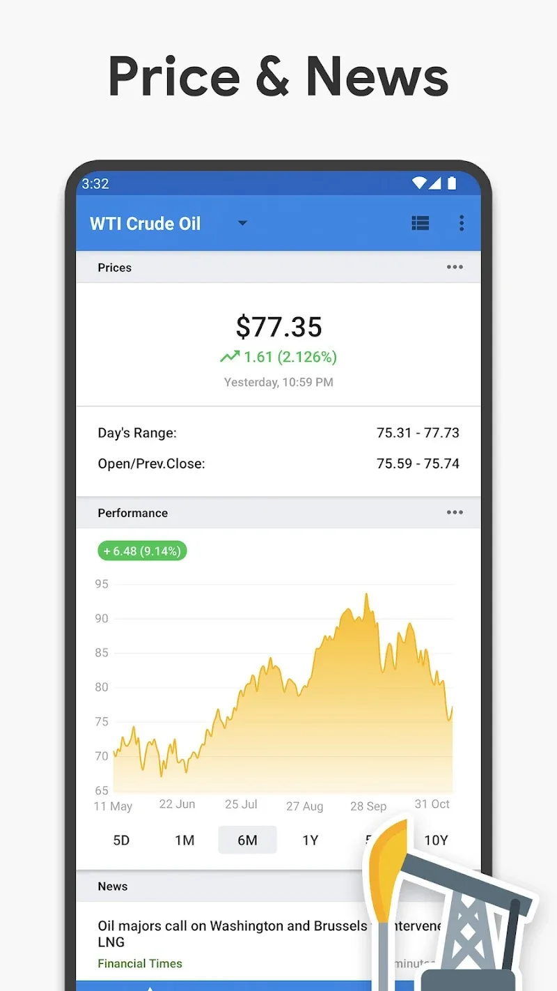 Crude Oil Price apk-en grasp the lowest or highest price points. The application shares accurate numbers to help users analyze more easily.Future Forecasting: Investment activities always bring many risks. The application will help users reduce the risk factor in each decision. The application will provide forecasts. All reports are based on verified information. Users will make better decisions.Market News: Observing the energy market is also an interesting job. Users can track the development of this market through the news board. Quick news will provide concise and complete news to users. The application also focuses on a single topic: energy.
