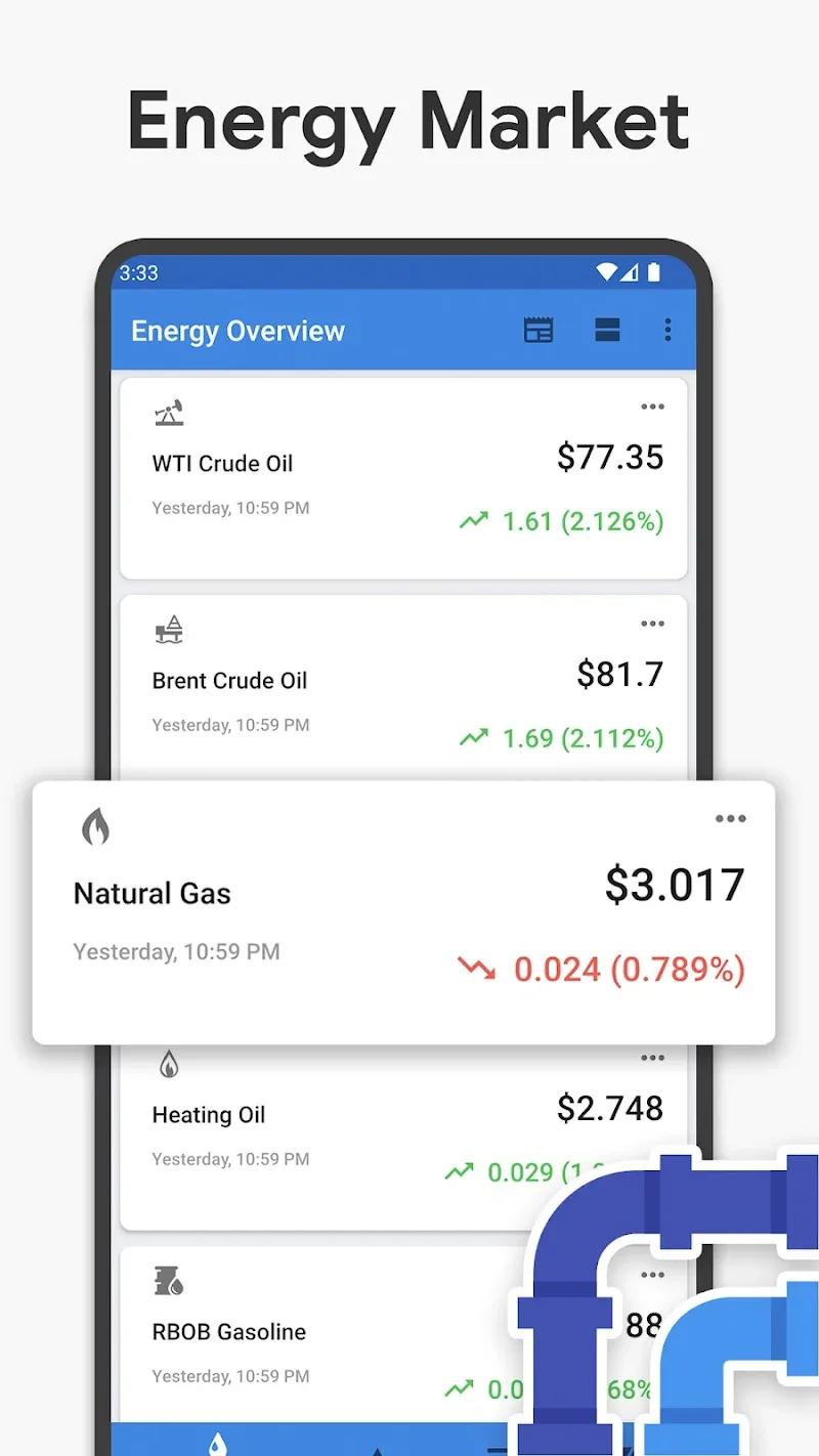 Crude Oil Price Mod Apk formation shared by the application is related to the price of energy. Important forms of energy are updated. Users can rely on this information to draw their conclusions. Each price can have a great impact on your investment funds.Comprehensive Coverage: The prices provided by the application are highly accurate. The application focuses on analyzing the price charts of Brent and WTI. Other information on the energy market is also shared. All the content that users may be interested in is provided.Instant Updates: The application tracking process helps users quickly update the latest news. The energy market is always chang